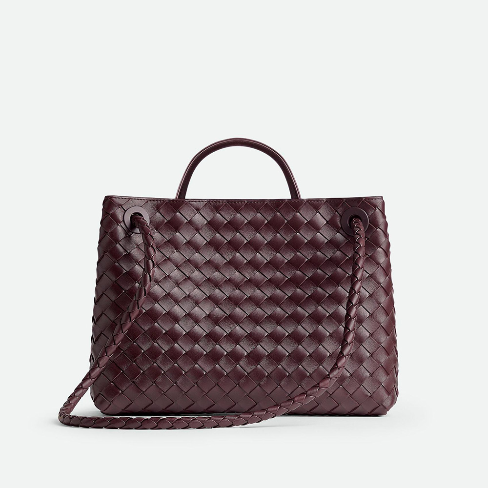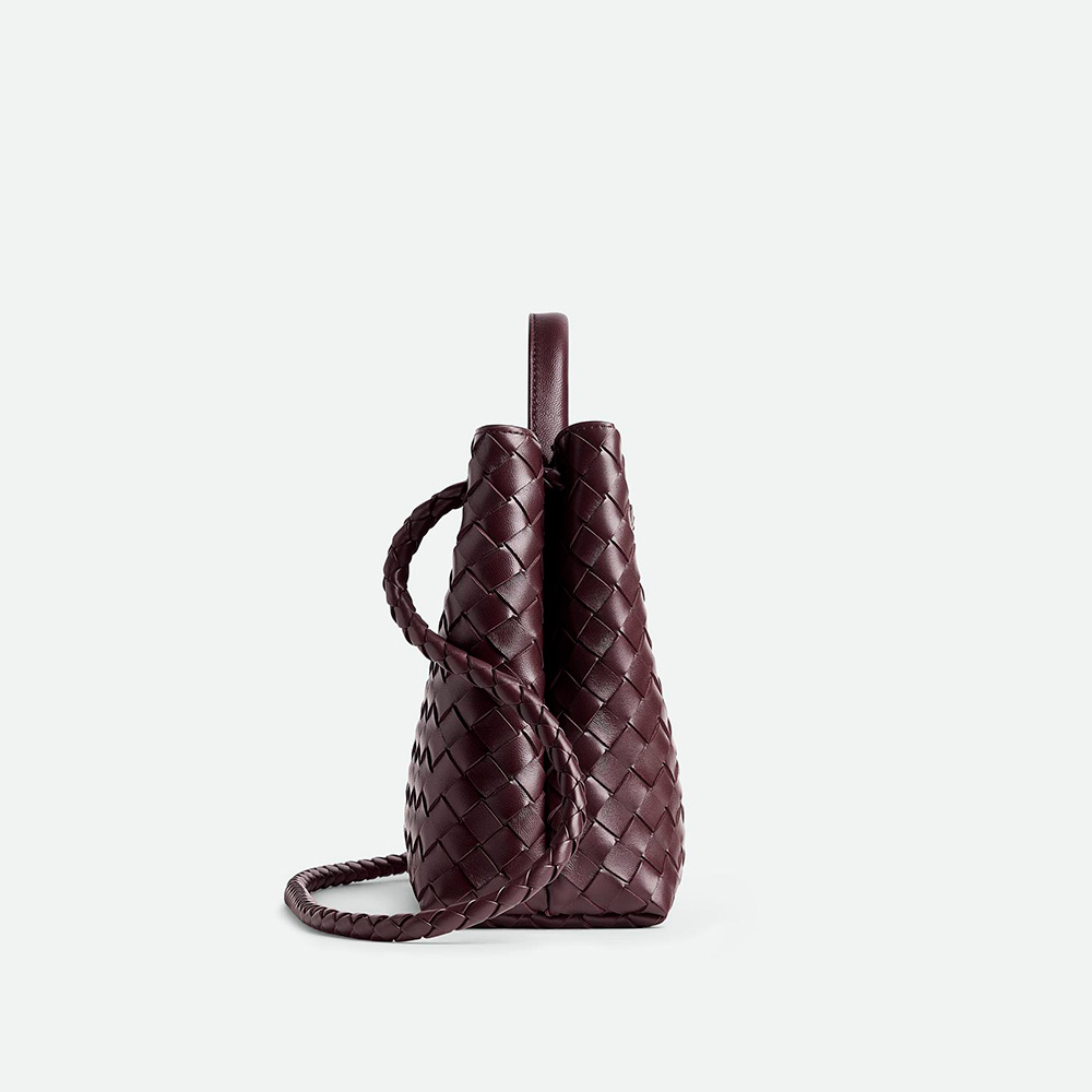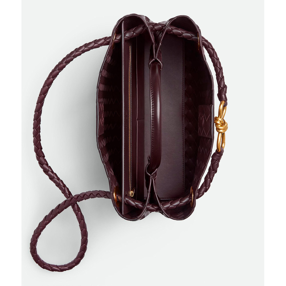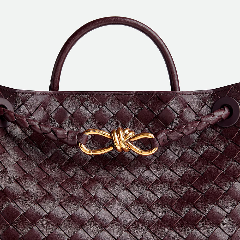 アイコニックなノットディテールとスライド式クロスボディストラップが付いた、しなやかなイントレチャートレザーのトップハンドルバッグです。