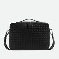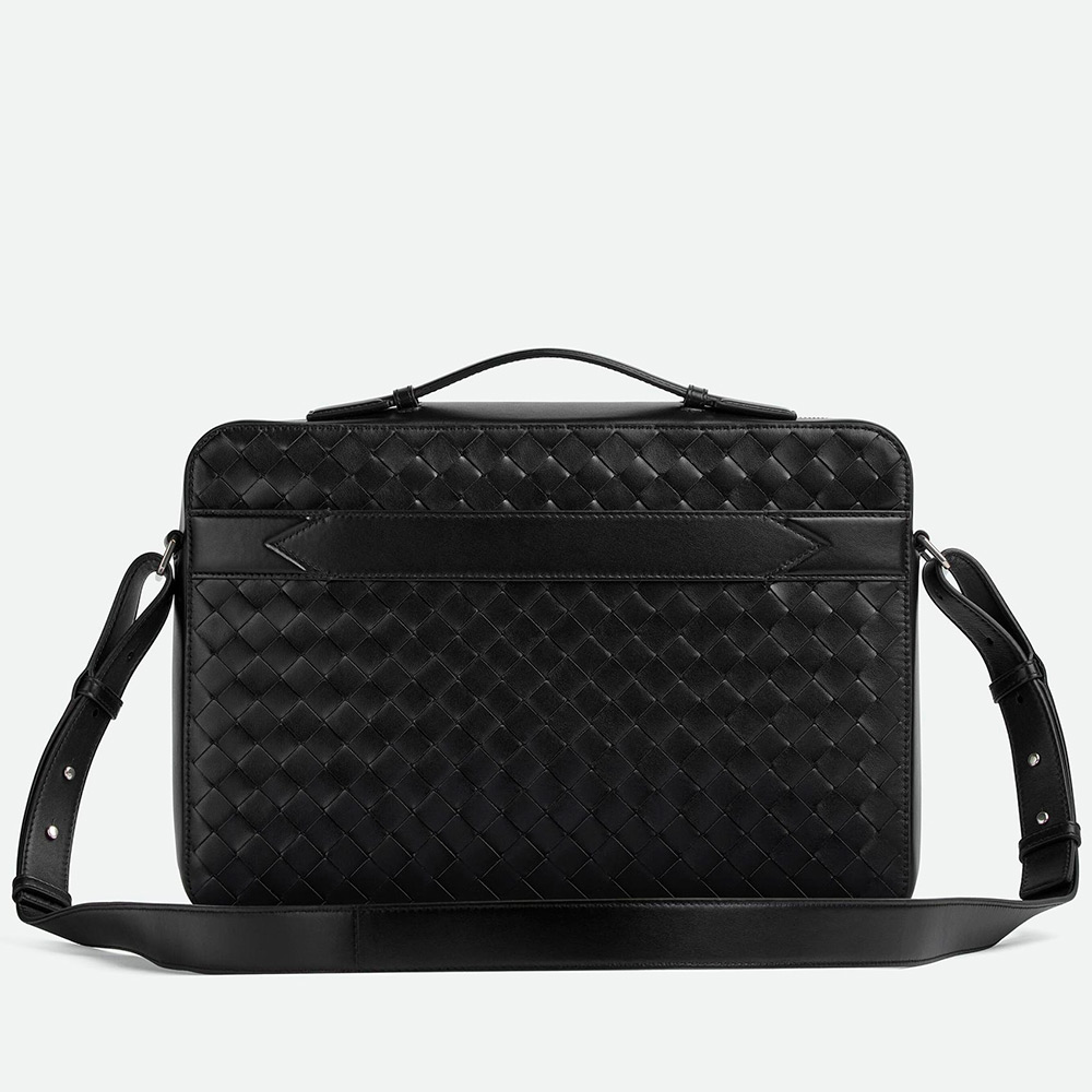 調節可能なストラップとバックベルトが付いた、ソフトなイントレチャートカーフレザーのスリムなブリーフケースです。