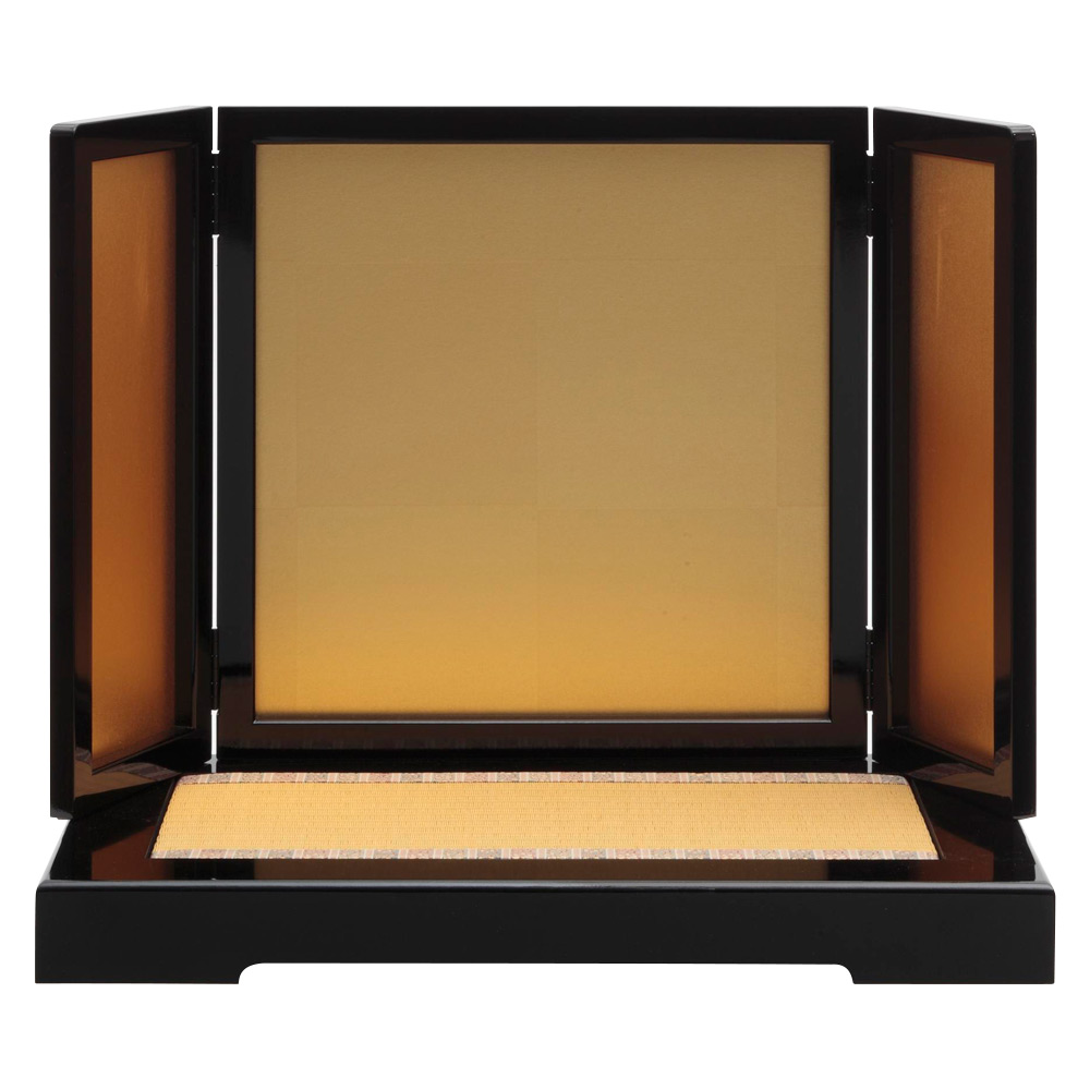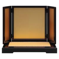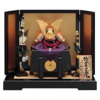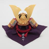 兜には細かい彫金で作られた竹雀の柄が施された、コンパクトながら重厚感ある作り。金屏風に映える一品です。