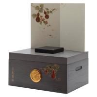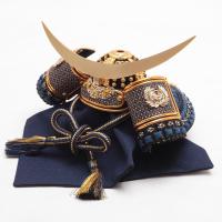屏風に描かれた瓢箪が上品で華やか。三日月の前立ての兜を引き立てます。