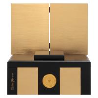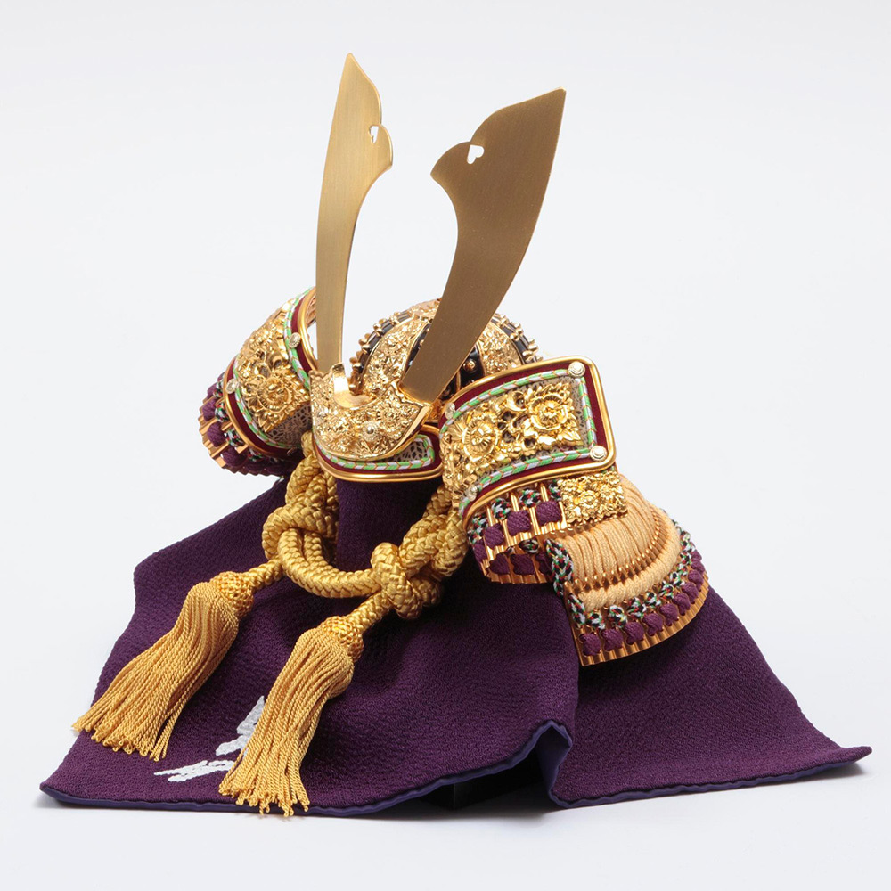 永遠・魔除けの意味を持つ金色の屏風に、高級感のある兜が良く映える一品です。