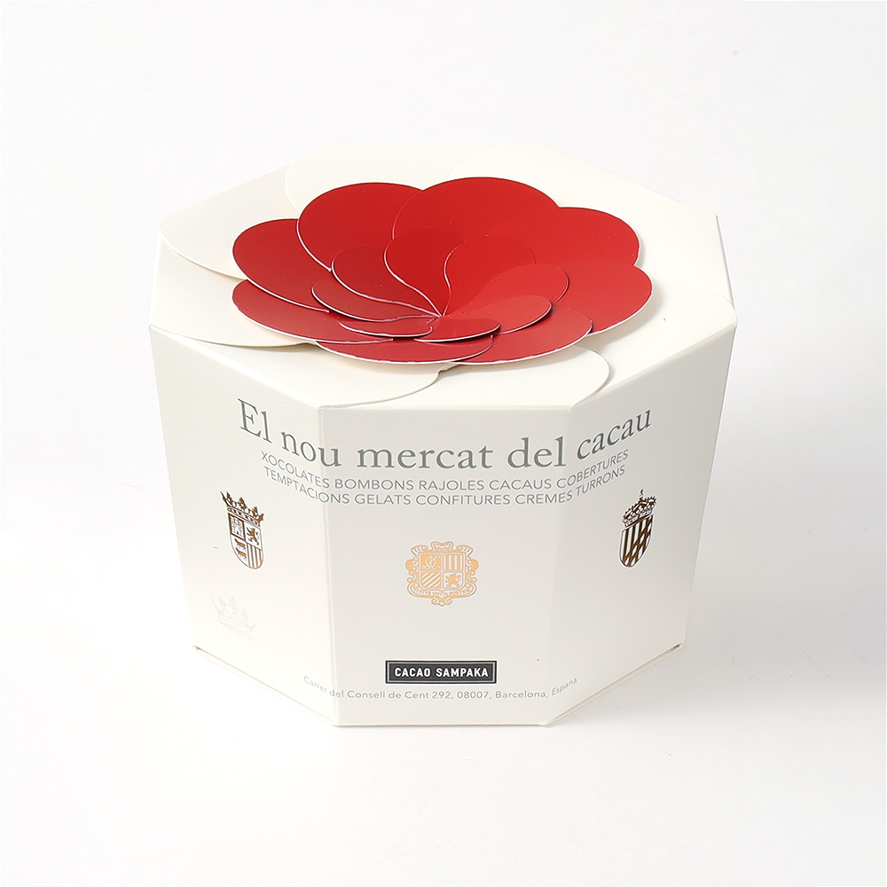 花をモチーフにした可愛らしいボックスに、5種類のチョコレート菓子をお詰め合せしました。<内容>マダレナ ピスタチオ プチガトー:カカオ分64%のクーベルチュールを使用し、一口サイズながらもカカオ感をしっかりとお楽しみいただけるチョコレートケーキに、香り高いピスタチオをトッピング。柔らかな食感とすっきりとした後味、口いっぱいに広がるカカオとピスタチオの風味を存分にお楽しみいただけます。和歌山県産柚子ピール:和歌山県産の柚子ピールにホワイトチョコレートをコーティングしました。柚子ならではの強い香り、特徴のある風味をお楽しみいただけます。トゥロン:スペインの伝統アーモンド菓子「トゥロン」を現代風に薄く仕上げた一品。現在でも家族で食べるお菓子として楽しまれています。ミルクチョコベースにココナッツシュレッドを練り込み、甘さの中でココナッツの華やかな香りが際立つ「キャラメル トゥロン ココナッツ」、ブロンドチョコベースにアーモンドとヌガーが織りなす甘さに塩味がアクセントになっている「キャラメル トゥロン ソルト」、ホワイトチョコをベースにした「キャラメル トゥロン フルーツ」の3種類。