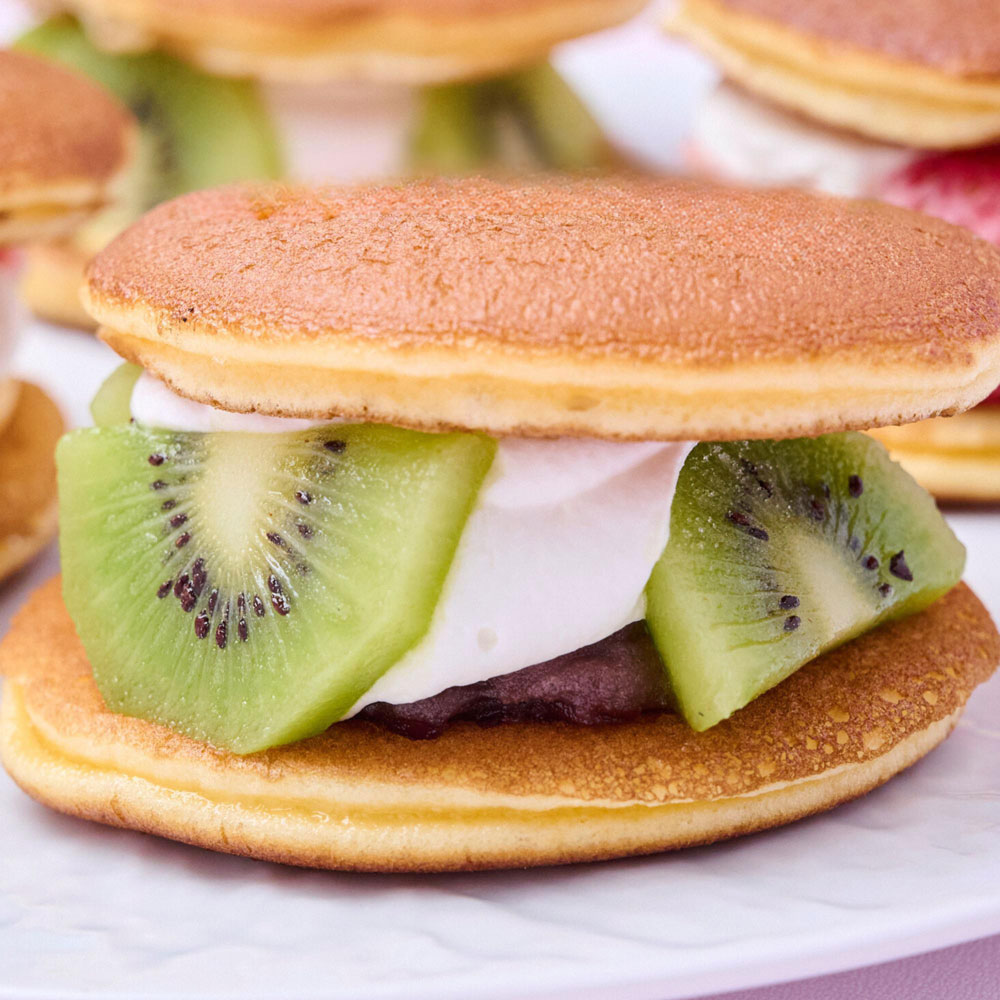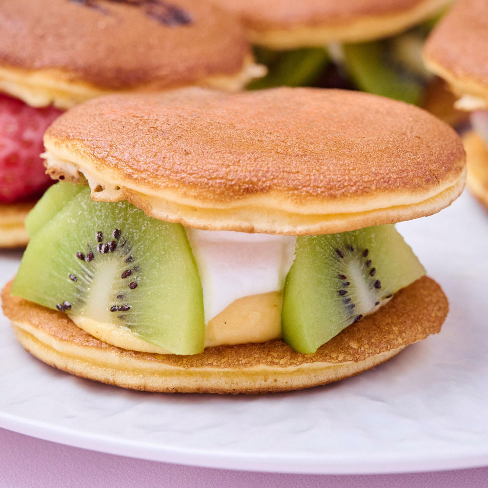 フルーツ生どら×4(カスタードクリーム×ホイップクリーム:いちご・キウイ 各1)、(餡×ホイップクリーム:いちご・キウイ 各1)