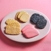 薄玻璃チュイル 白ごま6枚、黒ごま6枚、うま味5枚、あまおう苺5枚