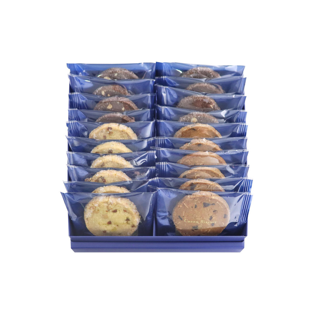 20個(ビターチョコレートビスケット×8、ミルクチョコレートビスケット×6、ホワイトチョコレートビスケット×6)