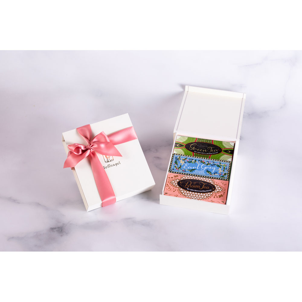 フレーバーが異なるバターサンド3個が華やかな詰め合わせギフトボックス。Huffnagelが贈る、ホワイトデーだけの特別な味の出会い。香り高い3つのフレーバーが織りなす、優しく華やかなバターサンドです。ほうじ茶の深い香ばしさ、アールグレイの気品ある香り、抹茶の上品なほろ苦さ。それぞれが調和しながら、時間とともにしっとりと変化していく。心を込めたお返しにふさわしい、特別な贈りものです。