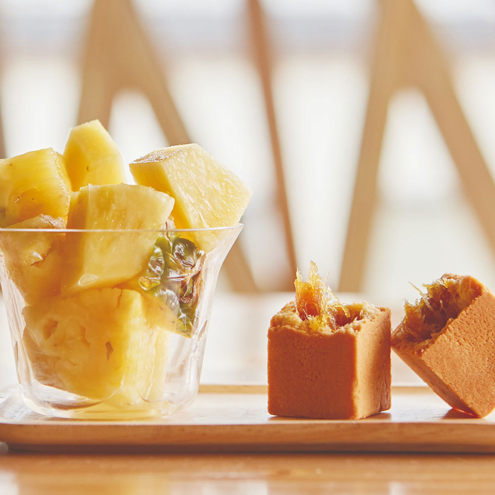 パイナップルケーキとりんごケーキをかわいいミニ布袋にいれました。ちょっとしたプチギフトにおすすめです。パイナップルケーキは、パイナップルの甘酸っぱいフィリングを、爽やかな風味が特徴のニュージーランド産グラスフェッドバターを使ったクッキー生地に詰め込みました。りんごケーキは、紅玉りんごの酸味と甘みを閉じ込めた、繊細な甘さの一品です。