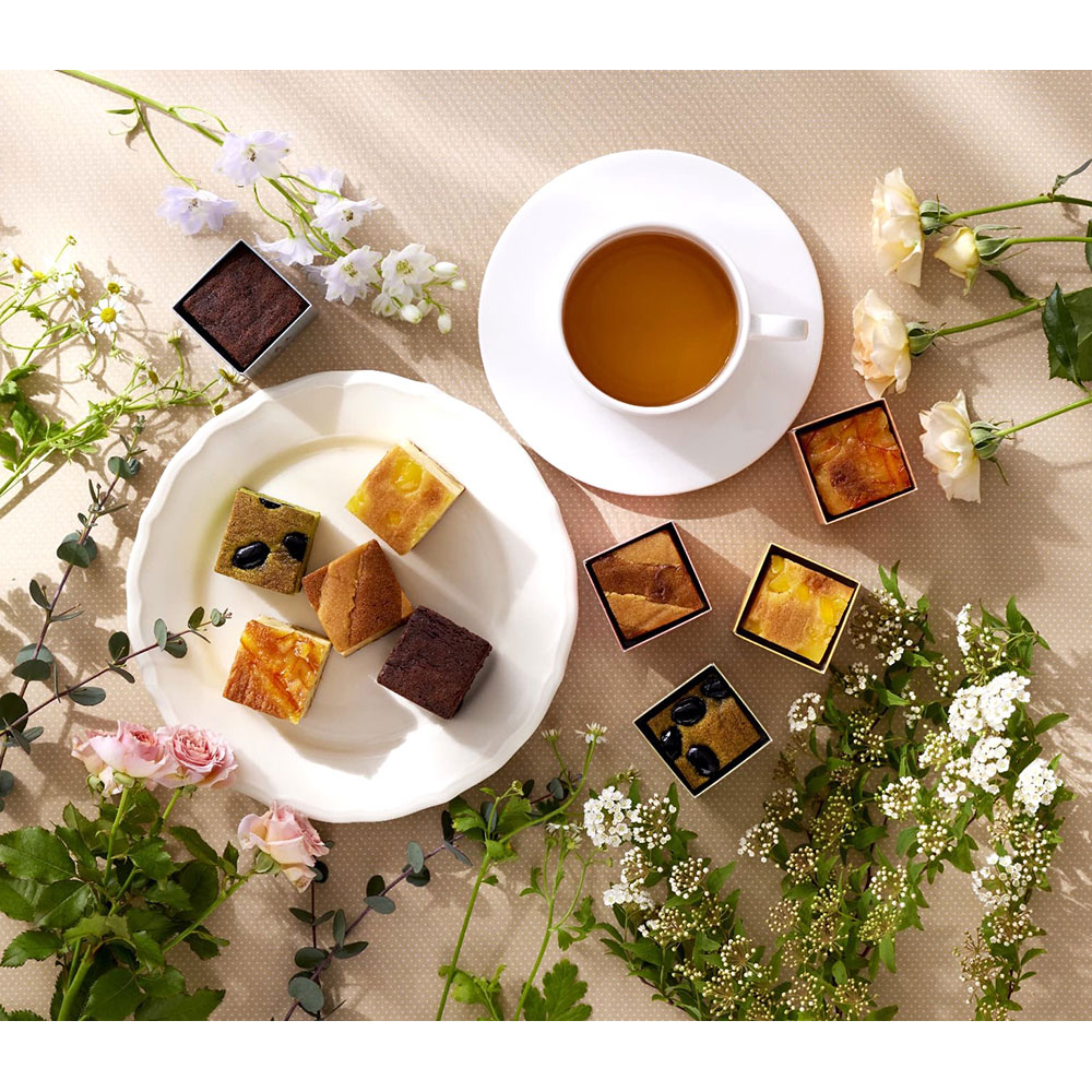 可愛いキューブ型のパウンドケーキ。それぞれの素材の持ち味を生かした豊富なフレーバーを楽しめます。美味しさ長持ちの個包装で、積み木を思わせる手のひらサイズのボックスに収めました。贈りものから自分へのご褒美まで、どのようなシチュエーションにもぴったりです。大切な方へのホワイトデーの贈りものにいかがでしょうか。