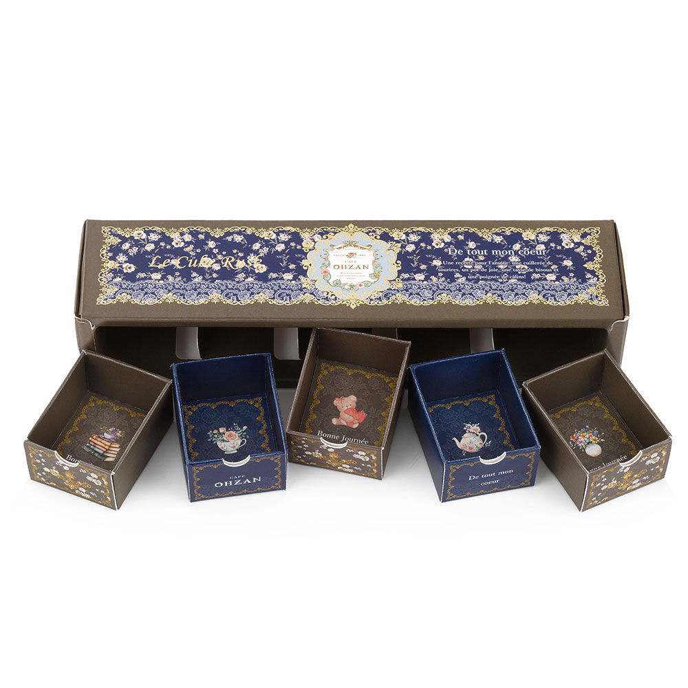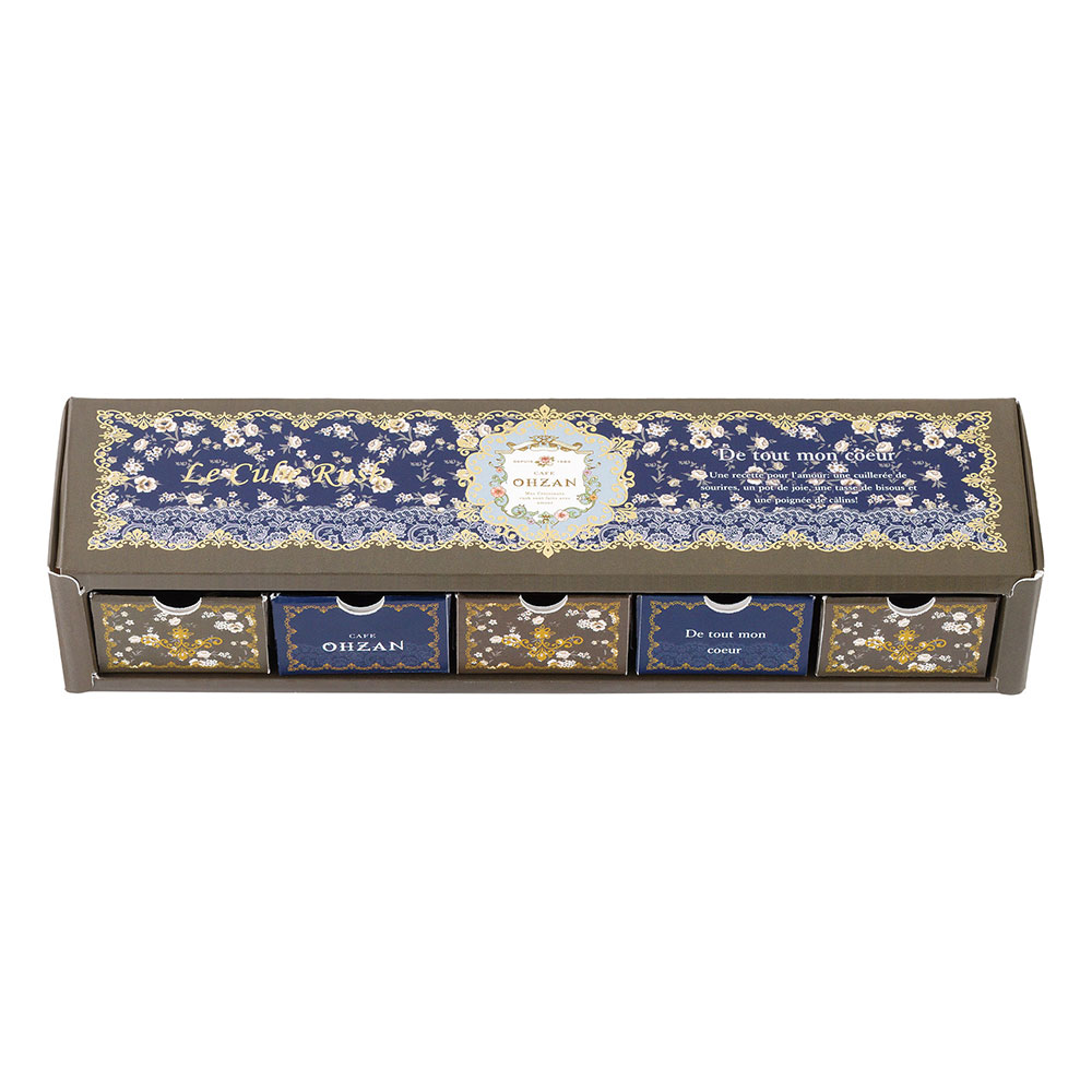 ネイビー&カカオブラウンの上品なパッケージデザインに春色カラーのデコレーションラスク。ミルクチョコ、ホワイトチョコの他に、新登場のレモンチーズのチョコレートも。ブランドのアイコンである小花柄(バラ)をあしらい、トレンドカラーのチョコレートブラウンでまとめたホワイトデー限定パッケージ。甘さの中に品の良さを感じさせる、カフェオウザンらしい「大人可愛い」世界観を大切な方への贈りものに。ホワイトデーはもちろん、ご自分への特別なひと箱としてもおすすめです。