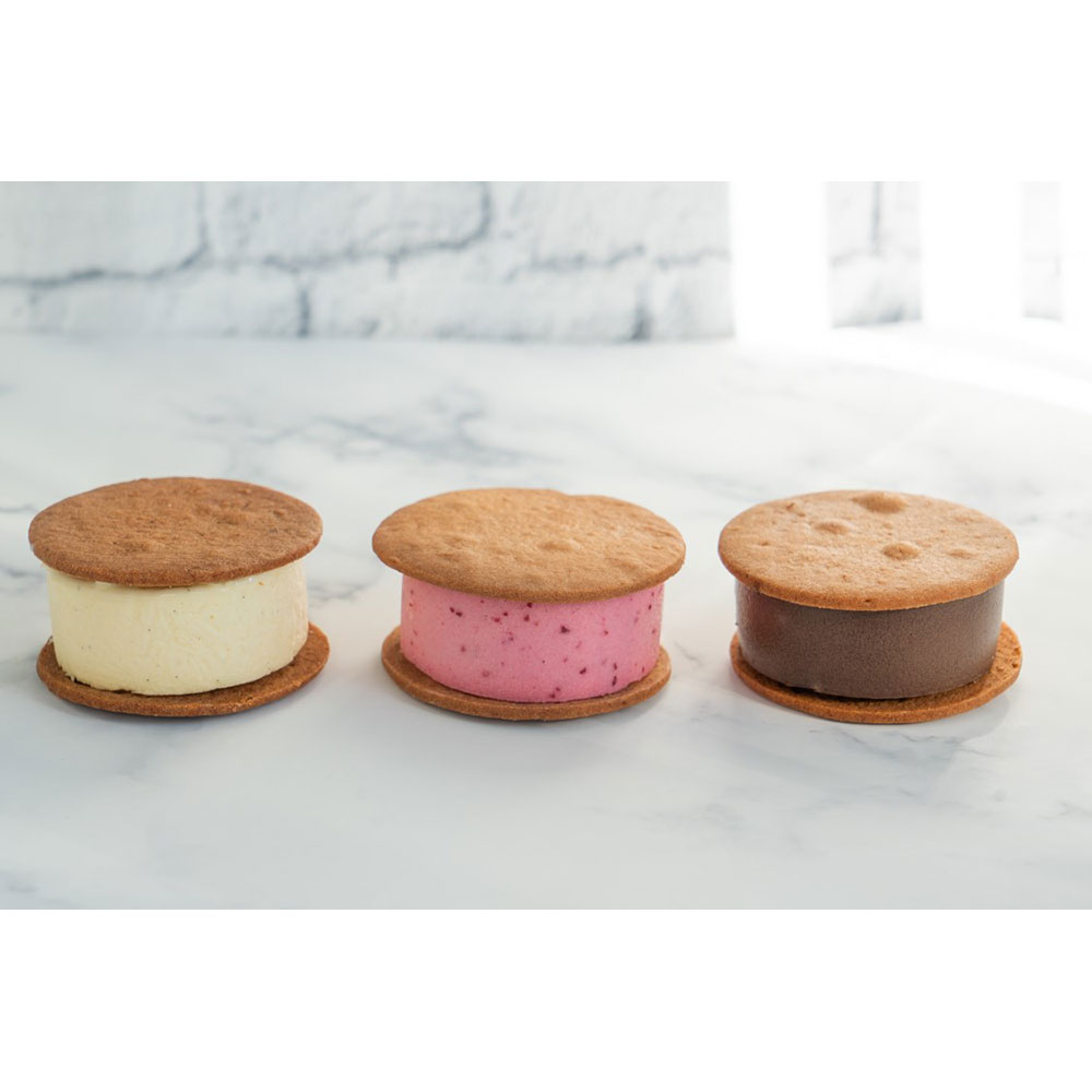 ジェラコッティ(クッキーサンドジェラート): ビアンコ(バニラ)80ml×2、ネロ(チョコ)80ml×2、ローザ(すももマスカルポーネ)80ml×2