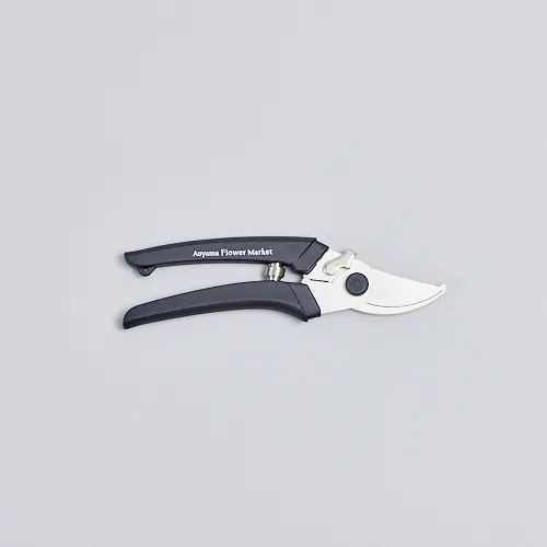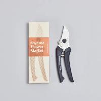 切れ味と使い易さにこだわる株式会社 坂源の人気商品を、青山フラワーマーケットカラーにアレンジした、剪定ばさみです。柄の部分は手になじみがよく握りやすいエラストマ樹脂素材。そして、力を入れやすい形状なので、太い枝ものもスパっと美しくカット。刃の部分はフッ素樹脂加工で汚れが付きにくいよう工夫されています。日常的に枝ものを飾る方や、庭木・盆栽などの細やかなお手入れをする方に、ぜひおすすめの品です。