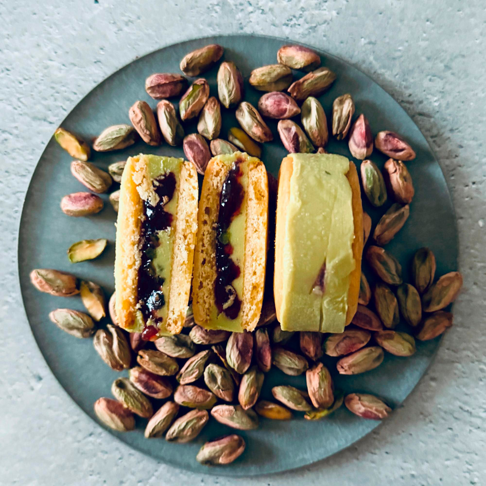冷凍で食べるとザクザクとした食感で、まるでアイスを食べているような感覚に。少し解凍するとバタークリームがバスク生地に染み込み、滑らかでしっとりとした食感になり、2通りの楽しみ方が可能です。全ての工程をパティシエが手作業しているため生産数量が限られ、原材料も厳選された貴重な一品です。