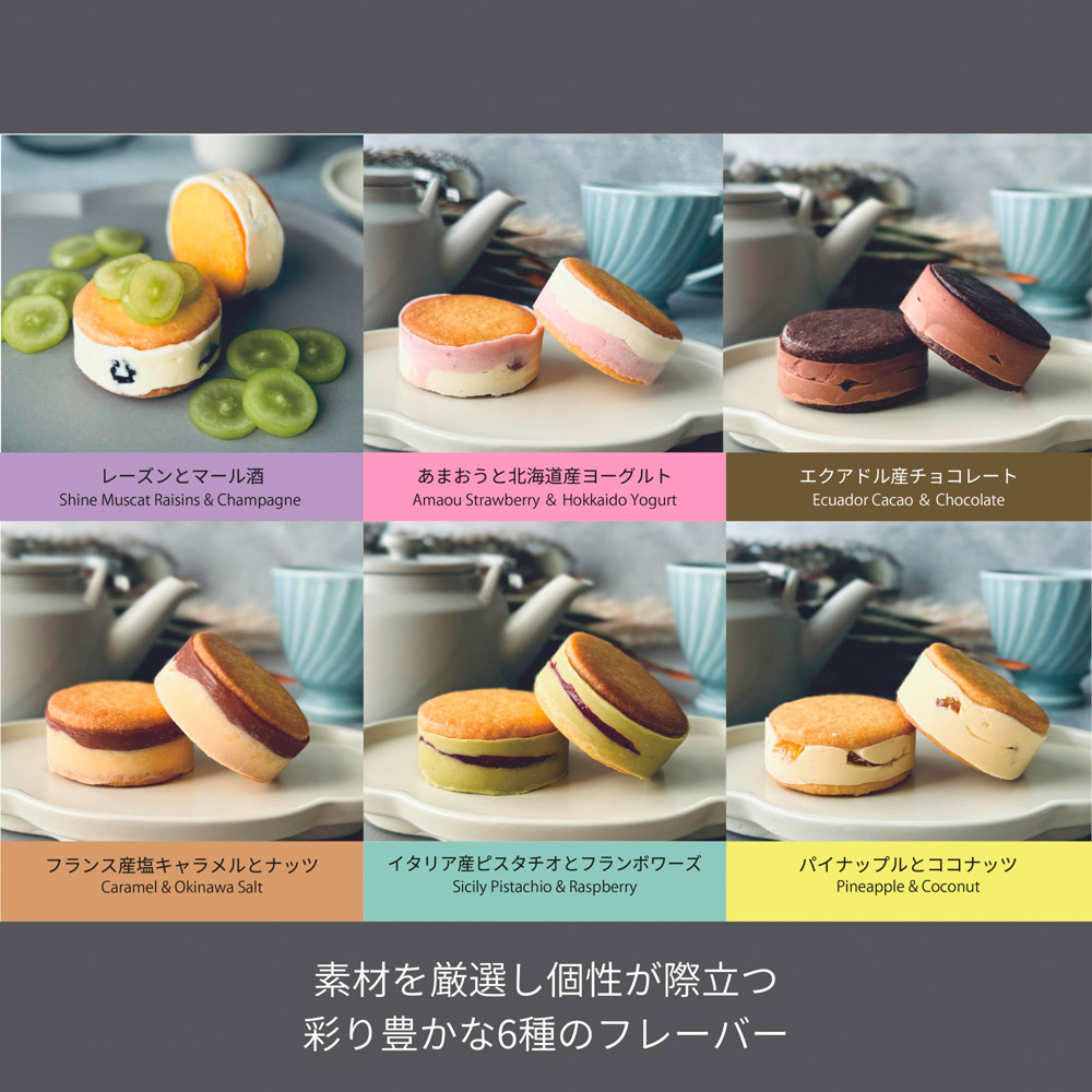 芳香な香り溢れる北海道産の濃厚なバターを使用したプレミアムバターサンドの全フレーバー 6種類×各1個 6個セットの詰め合わせです。