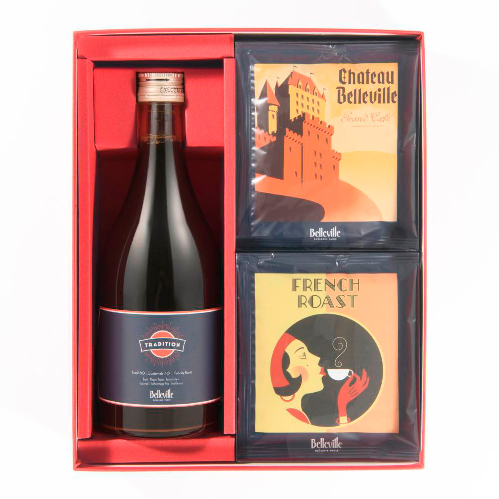 焙煎と抽出の世界チャンピオンがお届けする、ティーバッグのようなディップスタイルのコーヒーバッグと希釈用コーヒーのセットです。浅煎り~深煎りまでベルヴィルオリジナルブレンド6種類のコーヒーバッグは、お湯を注ぐだけでどこでも簡単に美味しいコーヒーを楽しめます。深煎りの希釈用コーヒーは『お水やお湯で割るとブラックコーヒー』『牛乳で割るとカフェオレ』として楽しめます。コーヒー1に対して牛乳やお湯2の割合がおすすめです。