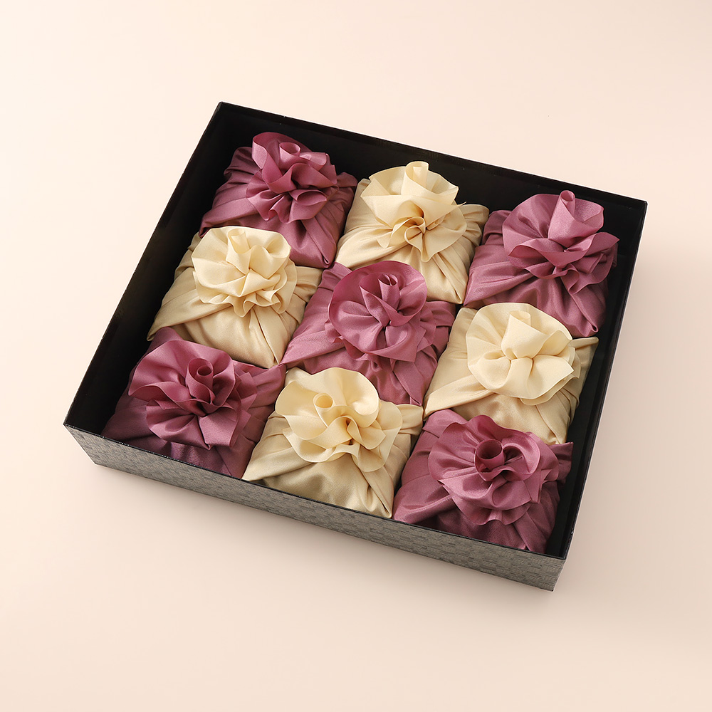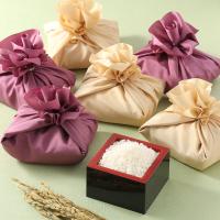 弔事や香典返しに。京の有名料亭御用達、八代目儀兵衛の厳選米を故人を偲ぶ草花をイメージした風呂敷につつみました。