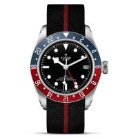 本モデルはGMT機能を備え、ローカルとホーム両方のタイムゾーンの時刻を知ることができる。ブラックベイ コレクションの他のモデルにも採用されているブルーとバーガンディカラーをマットな質感で採用し、デザインにアクセントを与えている。