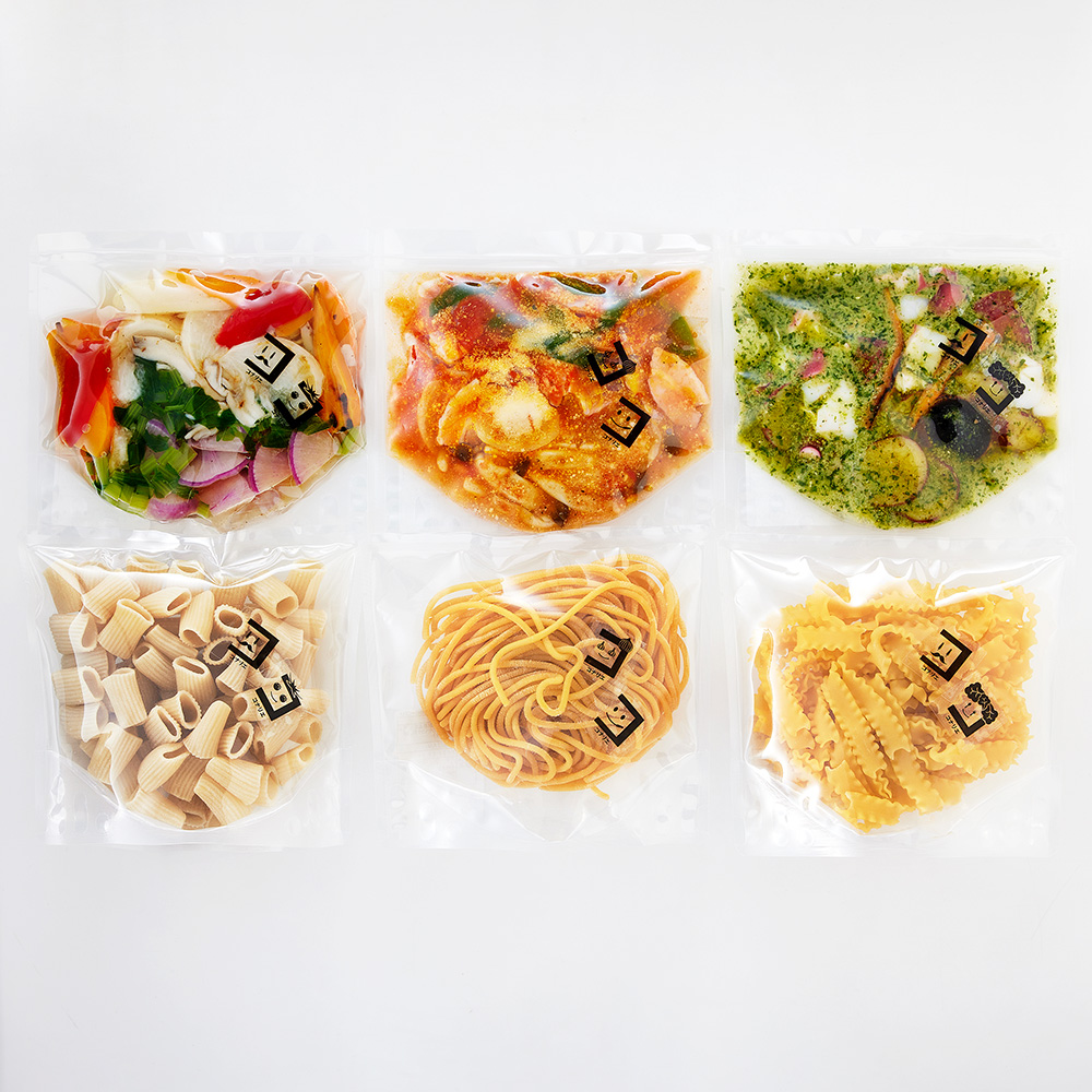 農家さんのアーリオオーリオと生パスタ2食入りセット、サツマイモとタコのジェノベーゼと生パスタ2食入りセット、ベーコンとキノコのナポリタンと生パスタ2食入りセット×各1