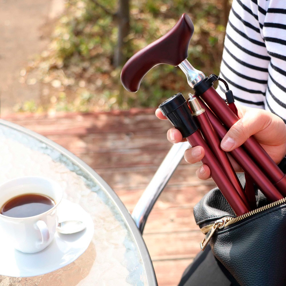 シンプルで使用しやすい無地の折りたたみステッキ。折りたたみが簡単で維持できる仕様です。