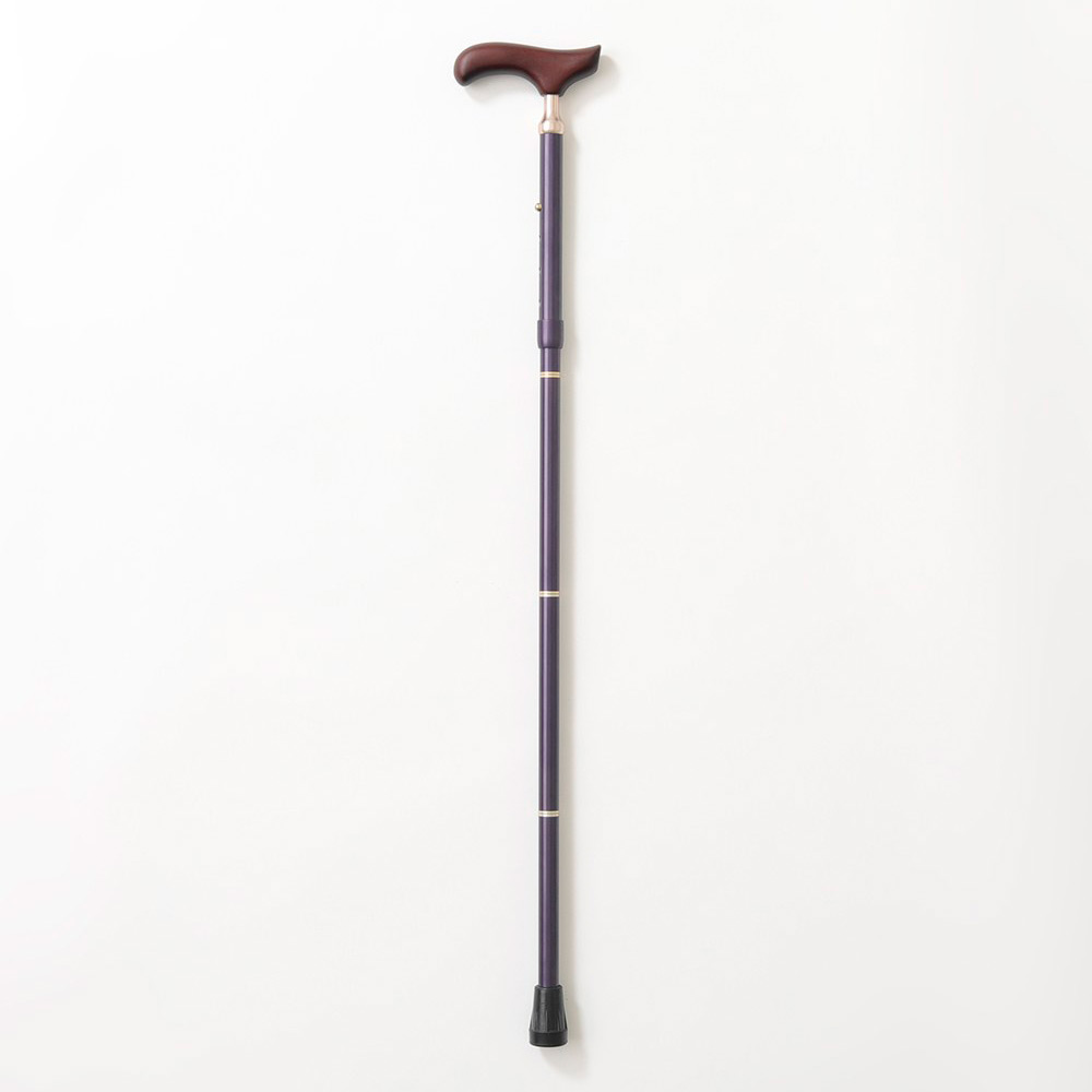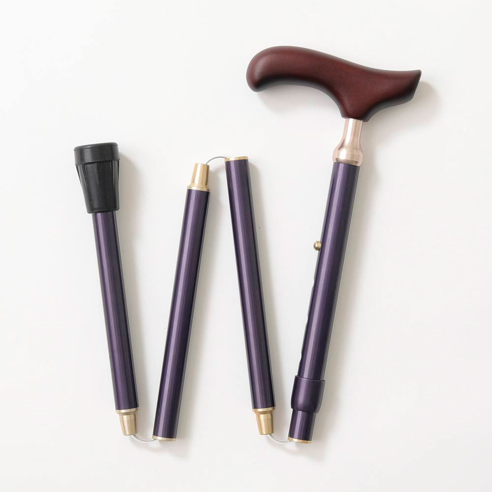 シンプルで使用しやすい無地の折りたたみステッキ。折りたたみが簡単で折りたたみが維持できる仕様です。