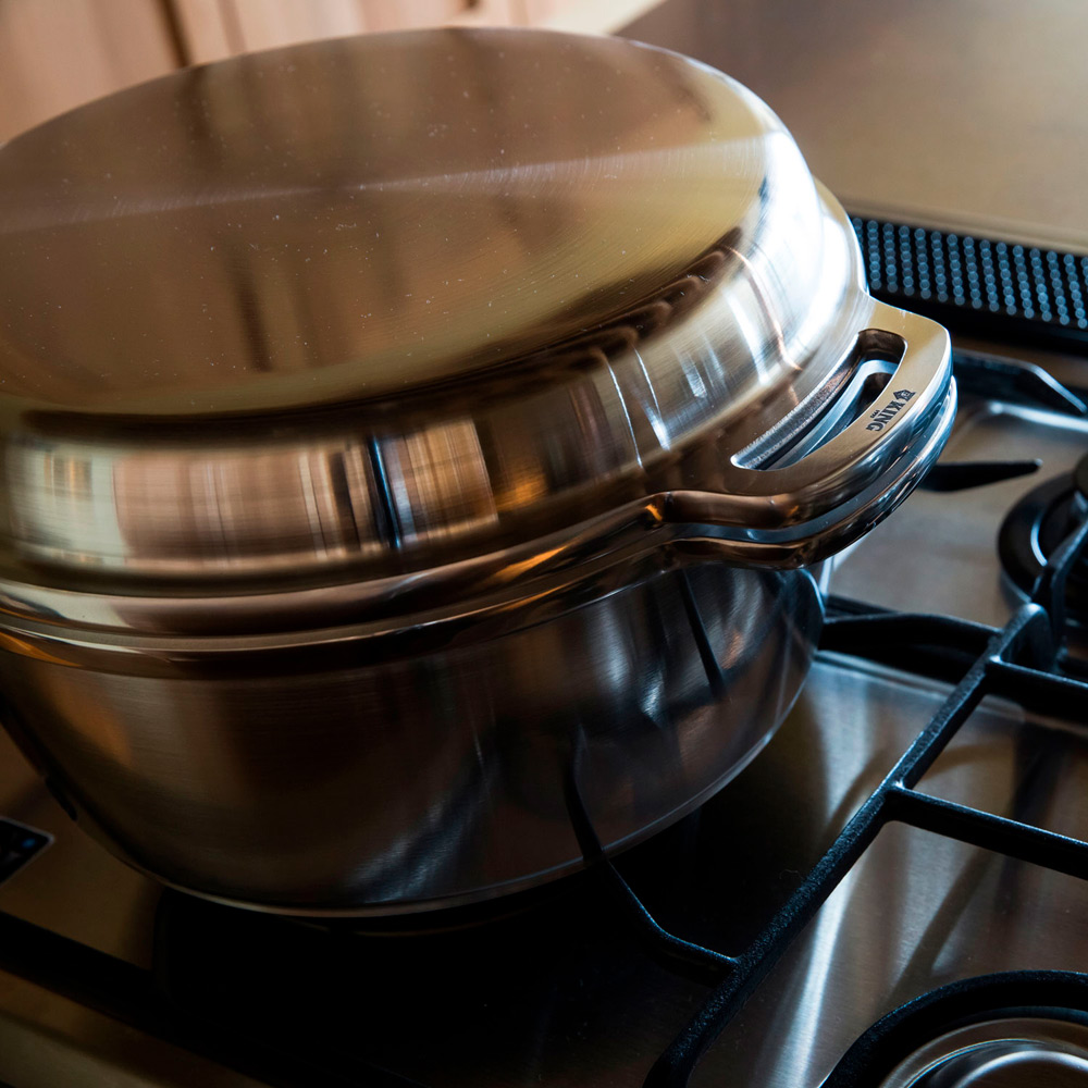 素材のうまみを引き出す無水調理で、栄養たっぷりのお料理を。余分な水を加えず、少ない油と調味料でヘルシーなメニューがおいしく仕上がります。