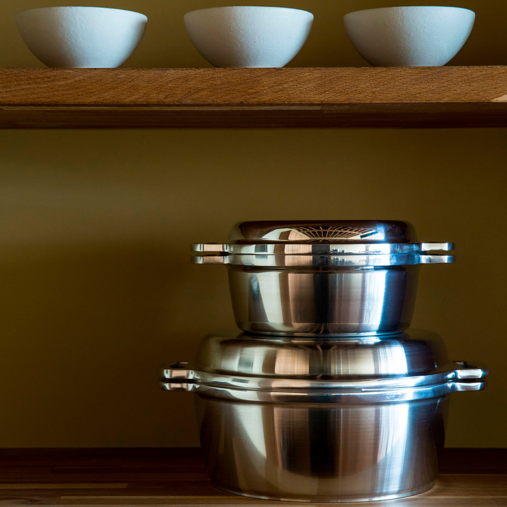 広島が世界に誇るアルミニウム鋳造技術から生まれた、無水鍋の定番シリーズ。素材の水分を引き出す高温調理で、栄養たっぷりのお料理に仕上がります。IHクッキングヒーターにも対応していて、無水鍋をすでにお持ちの方の2台目の選択肢にも。熱効率に優れたアルミニウムの特性を活かした無水鍋(R)は短い時間で食材に火を通すことができるので、忙しい日もスピーディーに料理ができます。また、保温力にも優れ、火を止めたあとも高温が続きます。