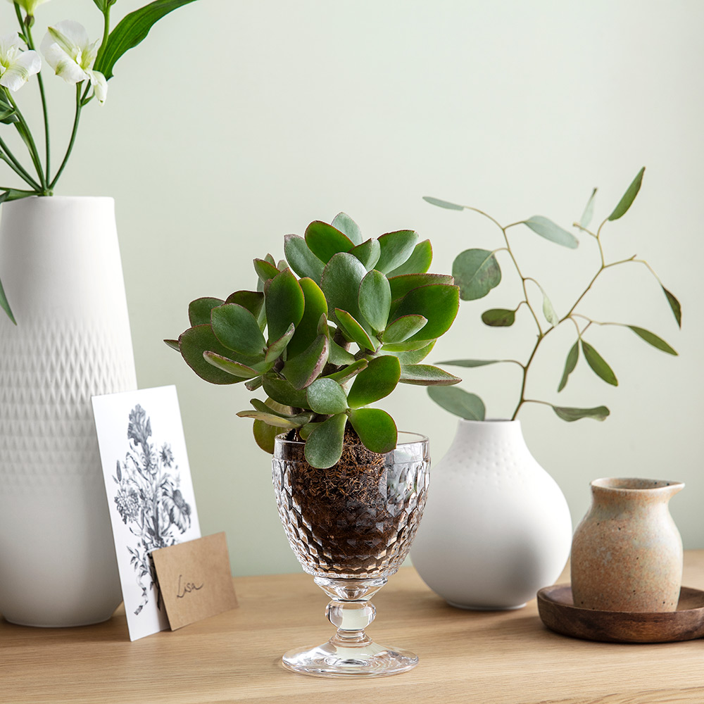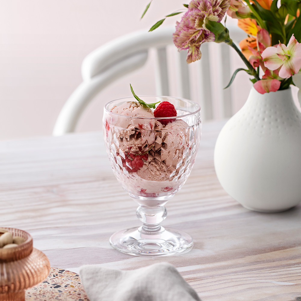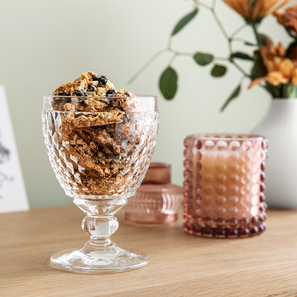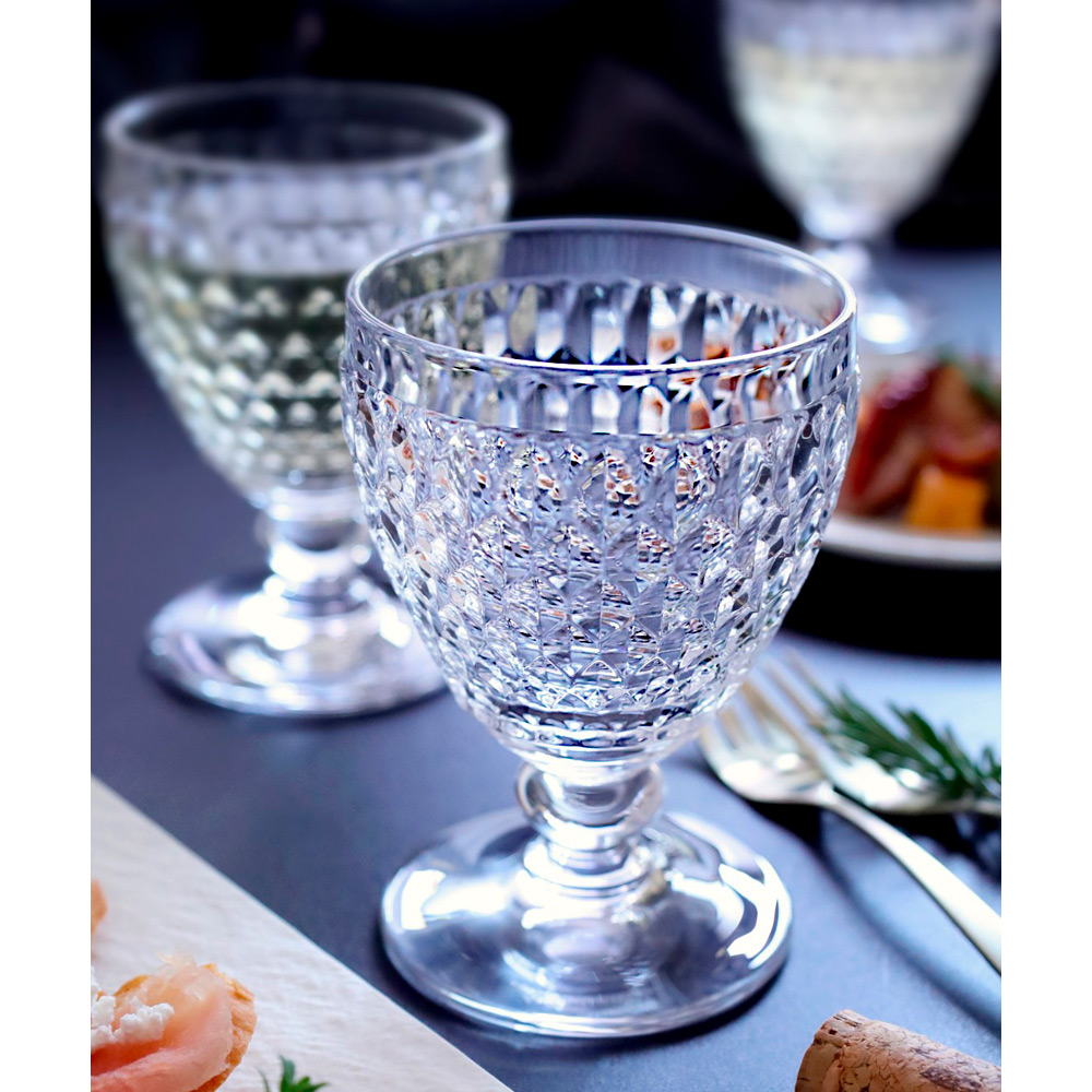 ダイヤモンドカットが光を反射し、表面がきらきらと輝くボストンは、20年以上の販売実績を持つビレロイ&ボッホのロングセラー商品のひとつです。ワイングラスでありながらステムが短く安定感があり、食器洗浄機に対応しているため、毎日気兼ねなくお使いいただけます。女性の手にもなじむ小ぶりで持ちやすいサイズと適度な重さ、飲み物以外にもお使いいただけるフォルムは、水やソフトドリンク、またヨーグルトやアイスクリーム、サラダや冷たいスープなどにも使える万能なアイテム。日々の食卓はもちろんのこと、パーティーやおもてなしにも使える華やかさを兼ね備えており、手にしていただくだけでテンションが上がります。使用用途がワインに限定されないため、ワインを飲まない方への贈りものとしてもおすすめです。