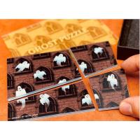 4片のピースに10人のオバケが描かれたパズルを組み直してもらうと、パズルに穴が空き、オバケも1人消えてしまいます。さらに組み直すと今度は・・・2004年に発表された傑作図形消失マジックを厚みのあるアクリル素材で再構築しました。パズルと図形のベースの上で組むので、サイズに変化がないことが強調され、従来の原理を知っていても非常に不思議です。