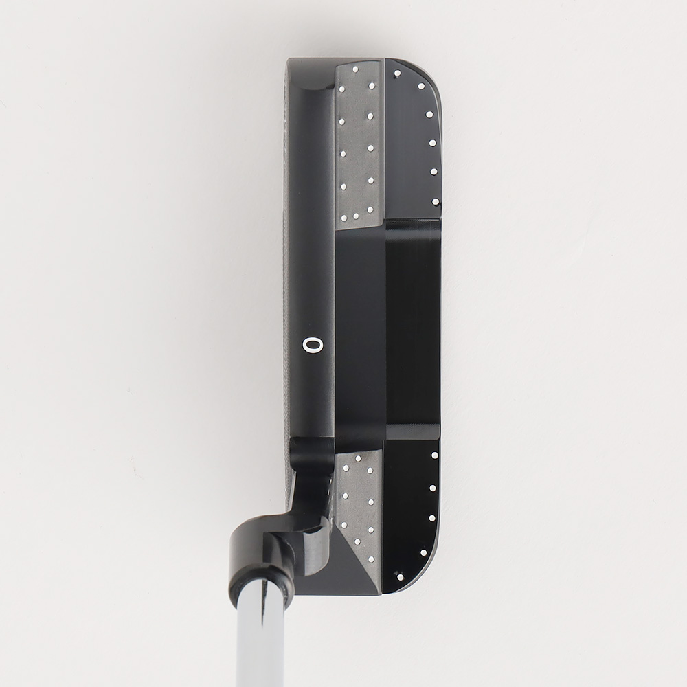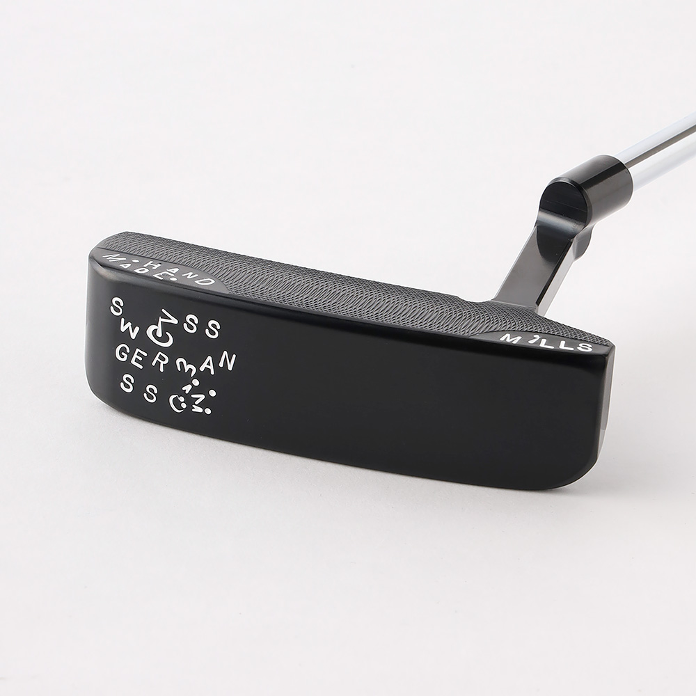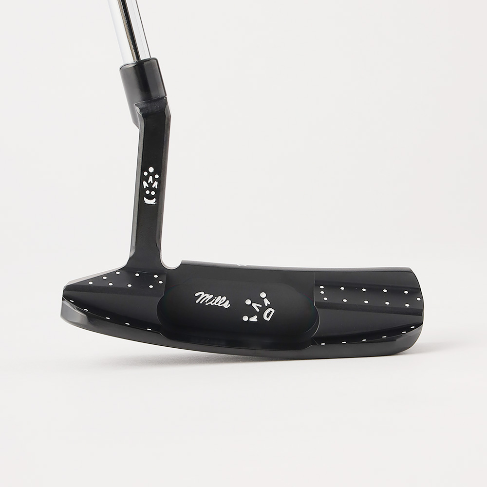 T.P.Millsを代表するモデルの一つ。スラントヒールと呼ばれる尖って下がったヒールと、角を削って丸みを帯びたソフトなラインのフランジが名前の由来です。こちらはヴィンテージブラックPVD仕上げにT.P.Millsのシグネチャー、サイトオーバルとステッチラインの刻印をすべてホワイトのペイントでシャープに仕上げた1本です。セミアーク~フルアークのストローク向きです。