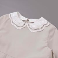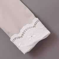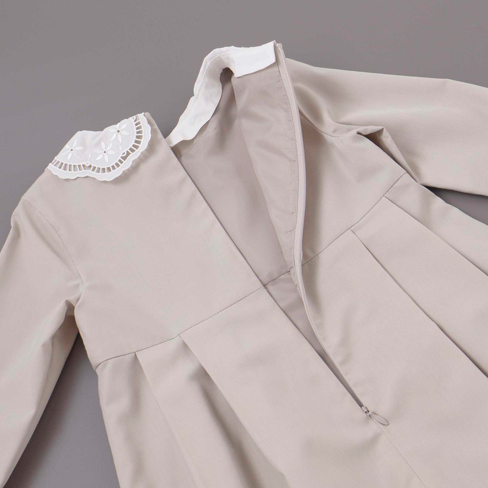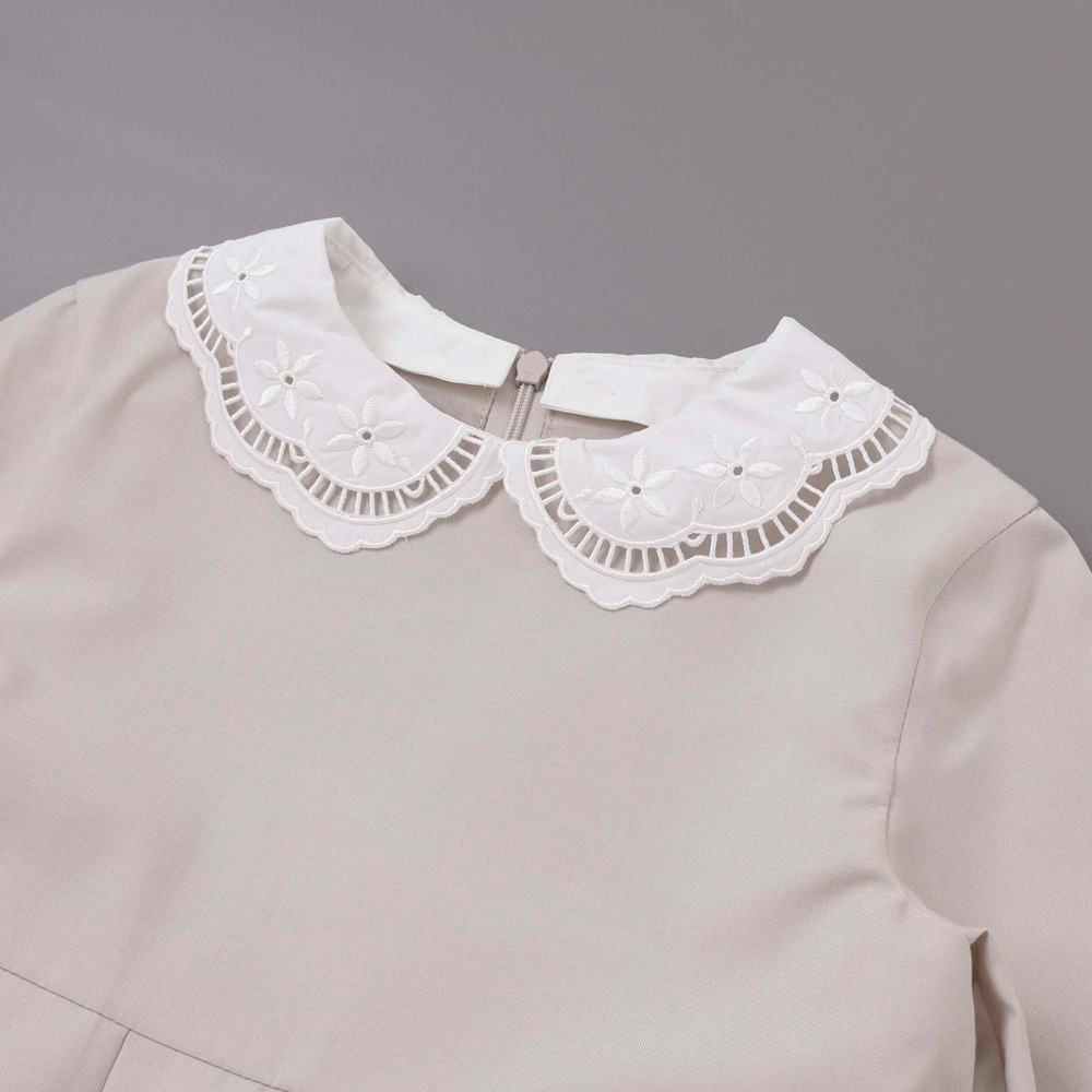 襟と袖に繊細な刺しゅうレースをあしらった華やかなワンピース
