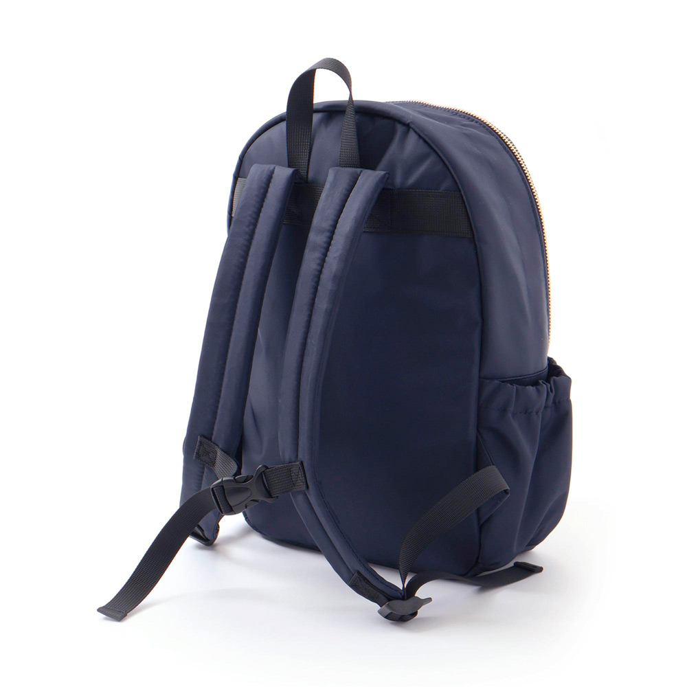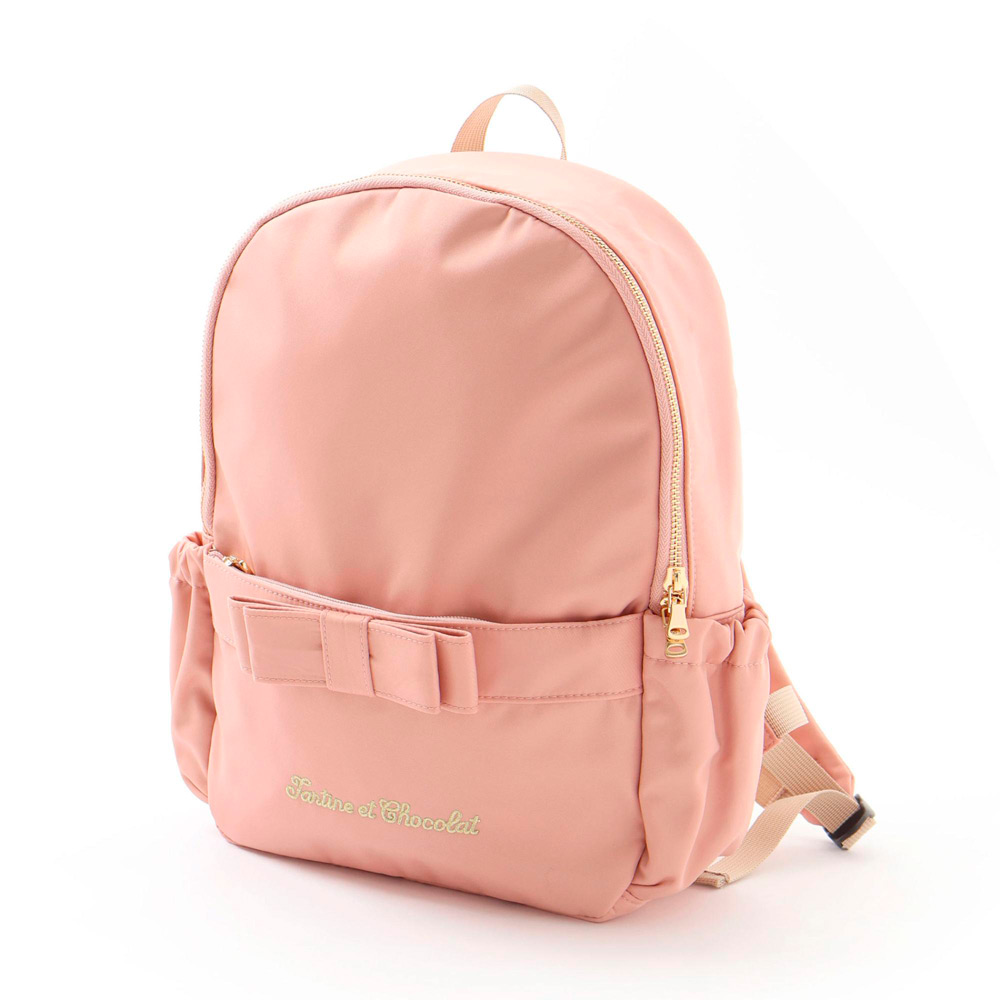 前ポケット・ヨコポケット・内ポケットと収納力も抜群です。同色リボンとゴールドロゴ刺しゅうが上品なデザインで、習い事や通学にもおすすめです。
