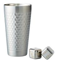 ステンレス、タンブラー:約径8×高さ14cm、アイスキューブ:約2.5cm角×2 中国製 箱サイズ/14.5×13.5×高さ8cm