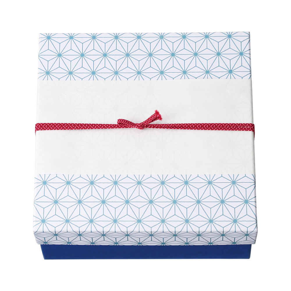約径15.5×高さ4.3cm×2(縁に本金使用)、デザインBOX入 日本製 箱サイズ/17×17×高さ7cm ※体裁はゴム掛けになります。 ※掛け紙をかける場合は、ゴムは付きません。