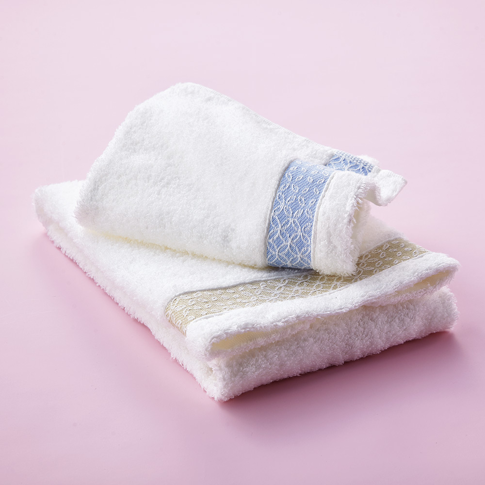 軽さや柔らかさとボリューム感を両立する〈伊予ひめ〉。伝統的な紋様を施した、心あたたまる木箱入りのギフトセットで。