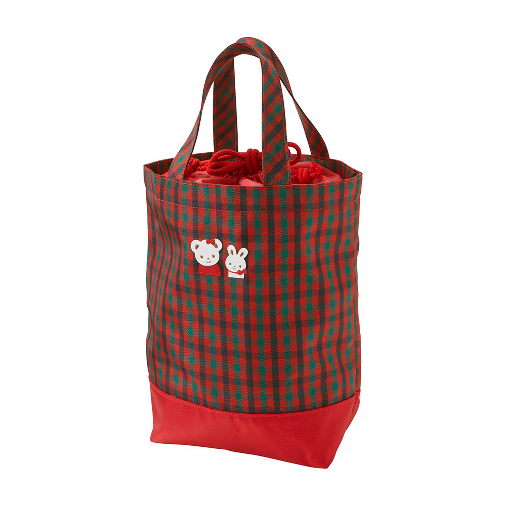 本体:ナイロン100%(裏面:アクリルコーティング)、袋口部分:ポリエステル100%(裏面:ポリウレタンコーティング)、底部分:ナイロン100%(裏面:ポリウレタンコーティング)、ひも部分:アクリル100%、皮革部分:合成皮革