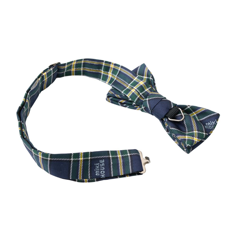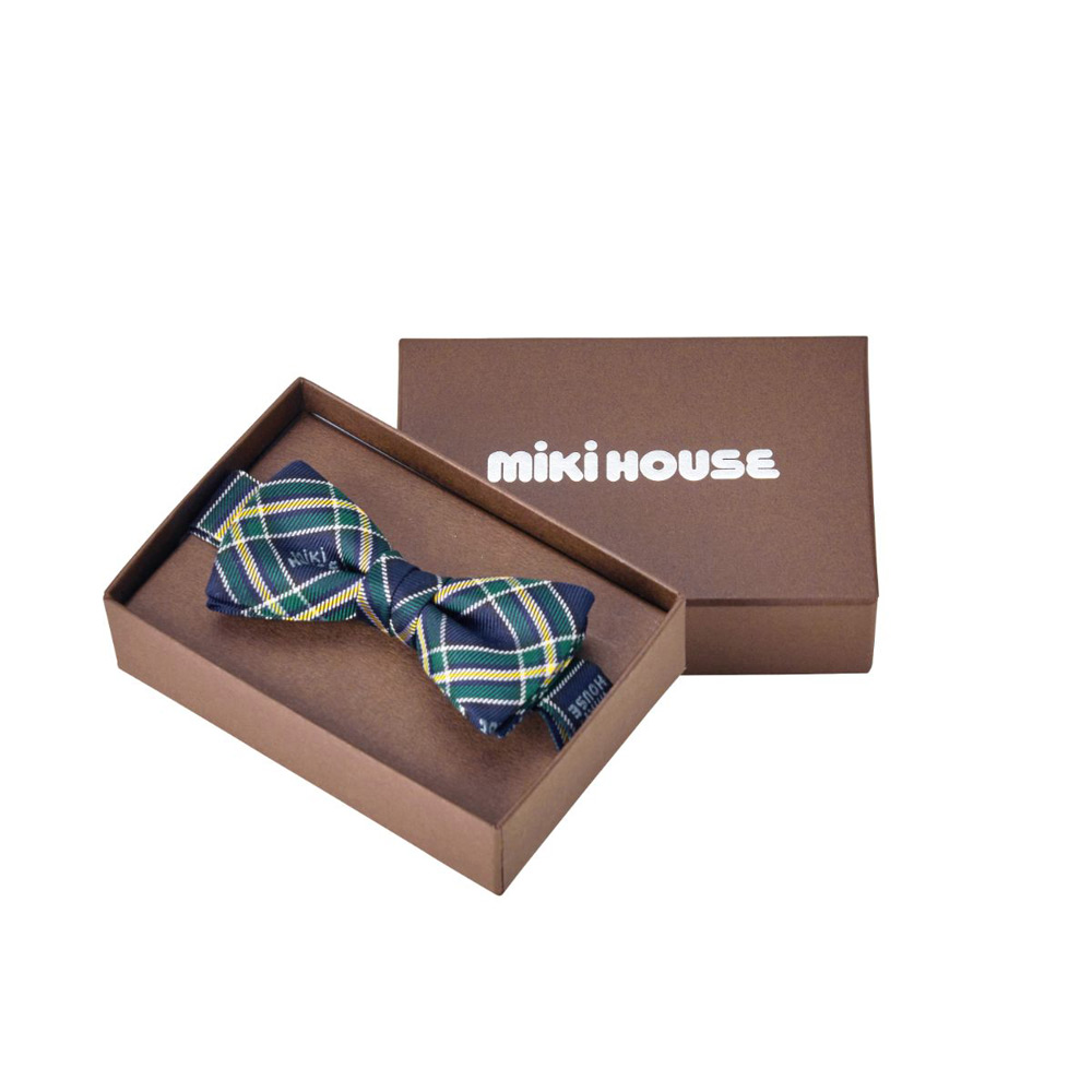 最高品質のシルクを使用したMade in 京都(西陣織)のミキハウスチェック柄蝶ネクタイ。フックで簡単に着脱できます。パーティなどのフォーマルシーンに。