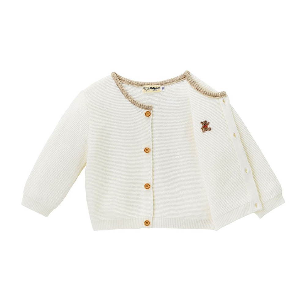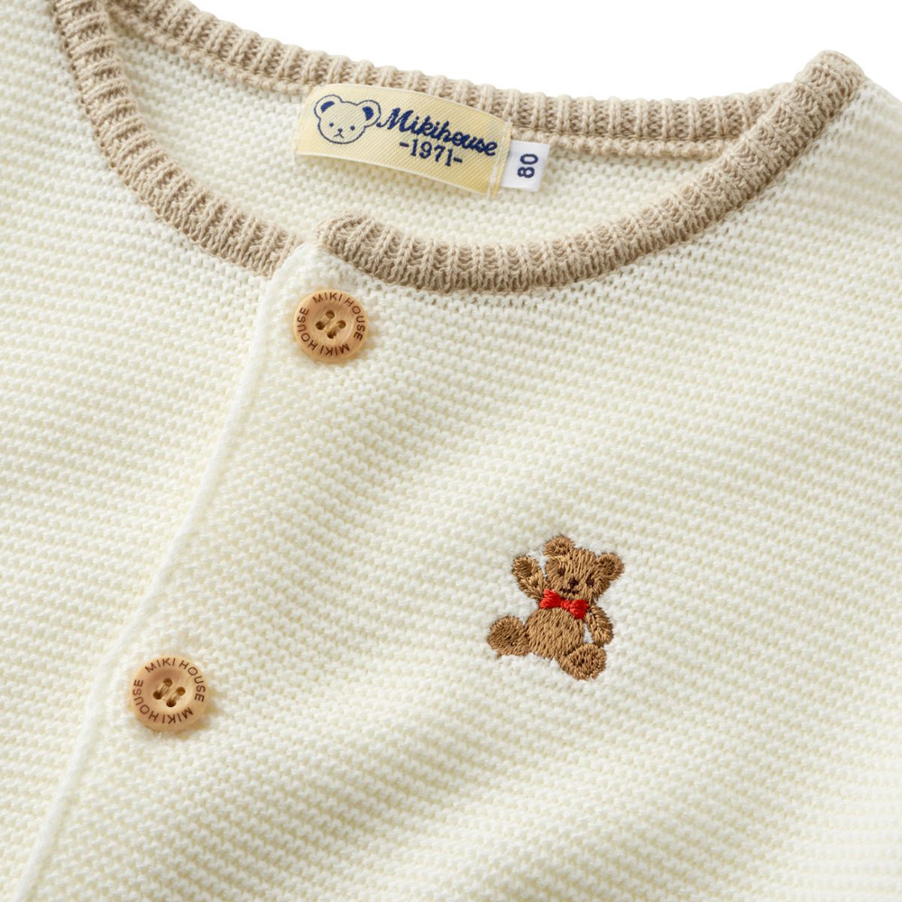 ワンポイントのミキハウスベアの刺しゅう が上品なニットカーディガン