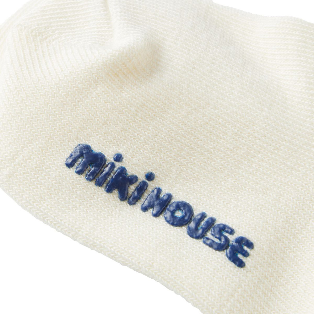 ミキハウスベアのワンポイント刺しゅう が付いた、シンプルで汎用性の高いソックス