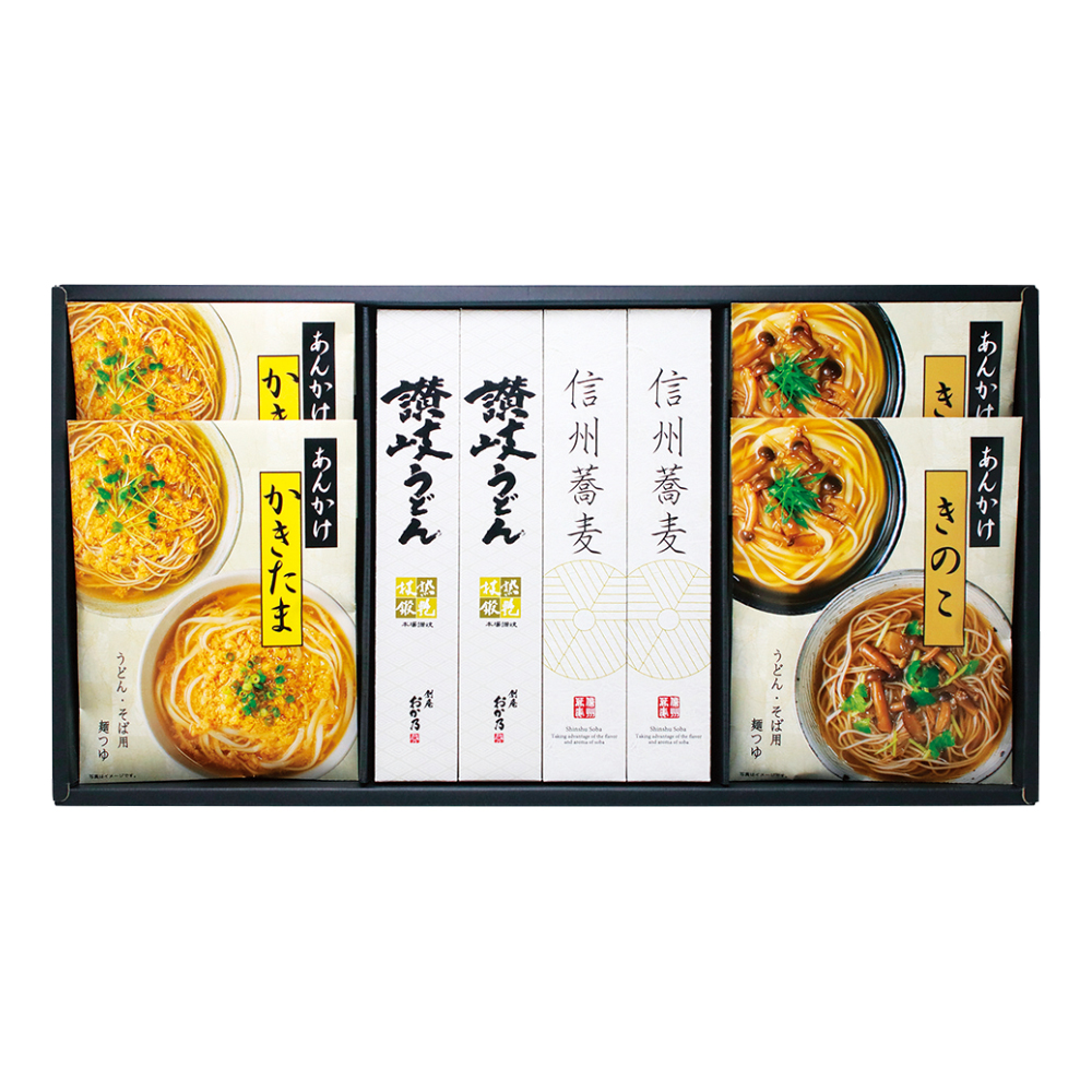 讃岐うどん・信州戸隠そば各80g×2、あんかけ(かきたま・きのこ)各200g×2