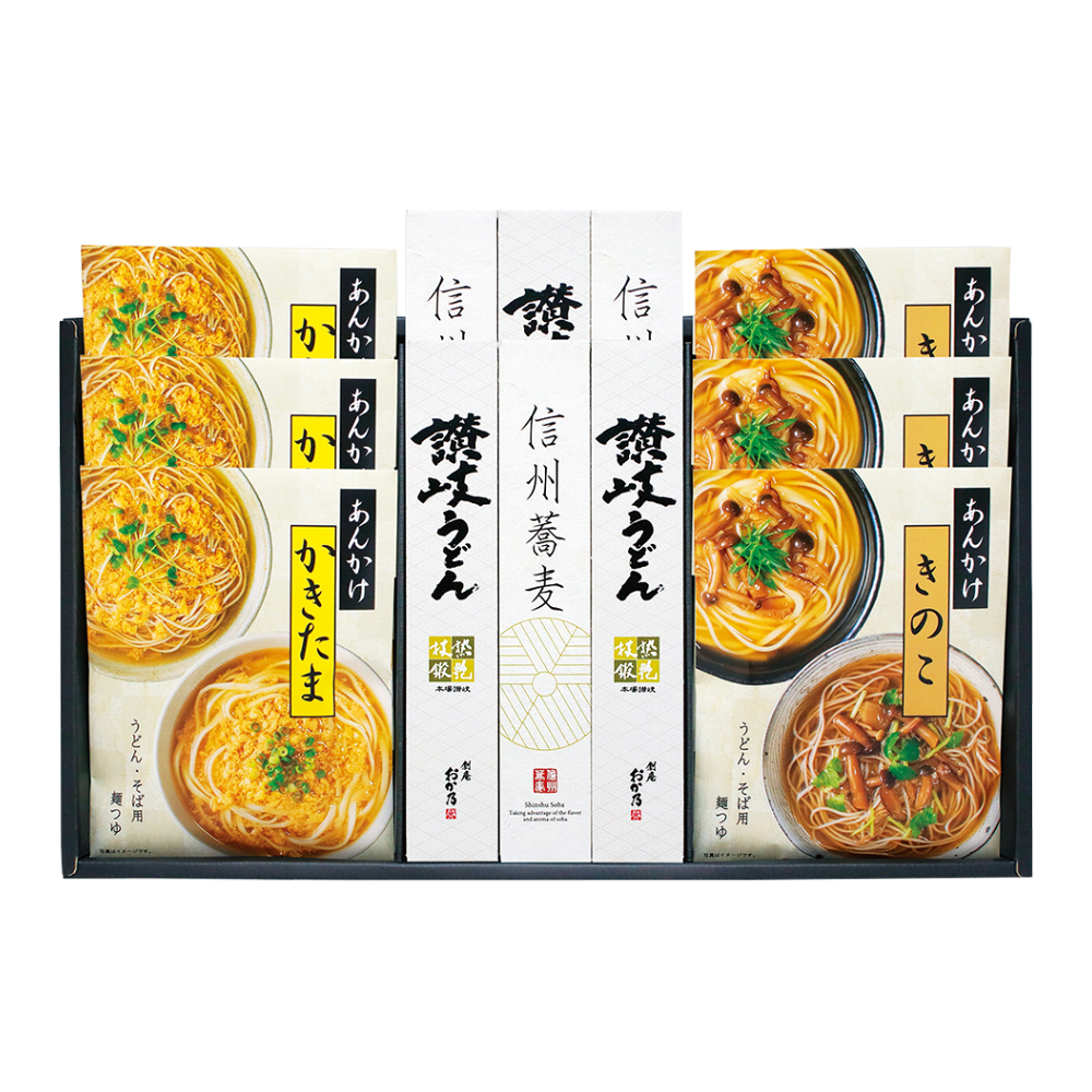 讃岐うどん・信州戸隠そば各80g×3、あんかけ(かきたま・きのこ)各200g×3