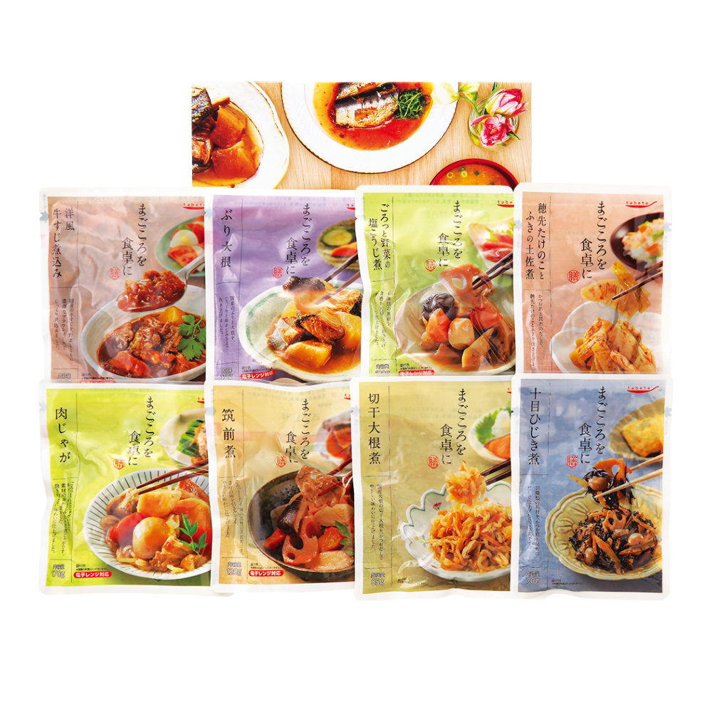 くらしに寄り添う、常温保存のお惣菜シリーズ、「まごころを食卓に 膳」の全商品の中から厳選して詰め合わせたギフトです。 ※こちらはセール商品のため、ご自宅用のみの承りとなります。