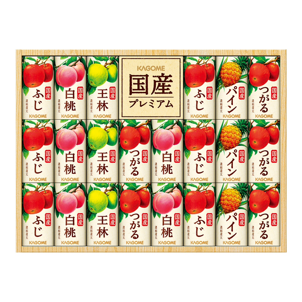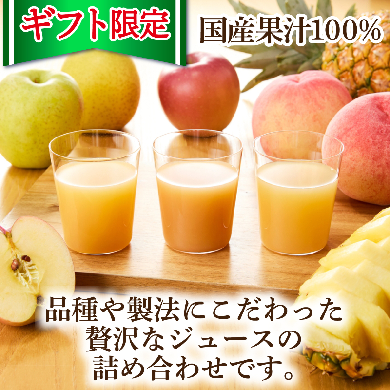 国産ふじ125ml×6、国産白桃・国産つがる各125ml×5、国産王林・国産パイン各125ml×3