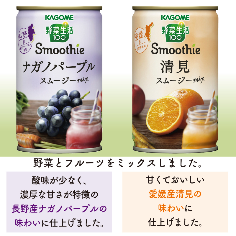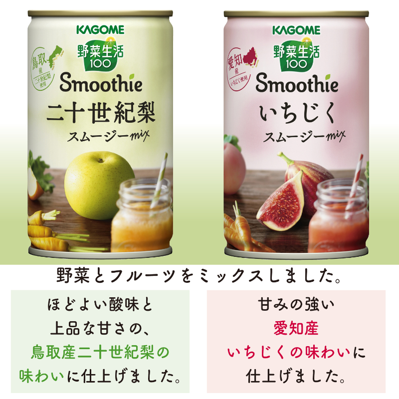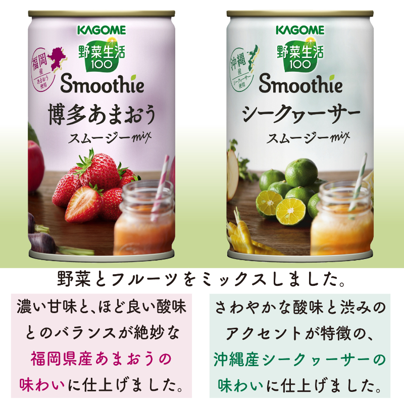 野菜生活スムージーmix(博多あまおう・清見・二十世紀梨・いちじく)各160g×3、野菜生活スムージーmix(シークヮーサー・ナガノパープル)各160g×2
