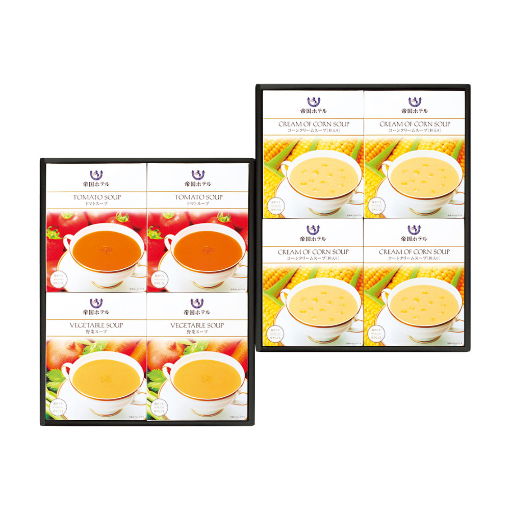 コーンクリームスープ(粒入り)150g×4、トマトスープ・野菜スープ各150g×2 ※冷やしても温めても美味しくお召しあがりいただけます。