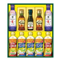 ヘルシーごま香油145g×2、ボスコエキストラバージンオリーブオイル140g、こめ油×2・ヘルシーオフ×3 各350g、キッコーマンしぼりたて生しょうゆ450ml×2