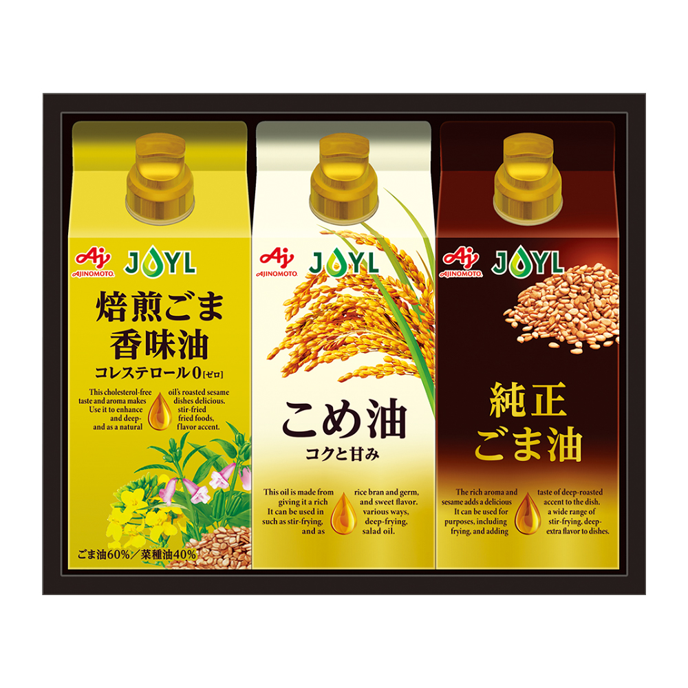 こめ油やごま油など幅広い料理にお使いいただける食用油を詰め合わせたギフトです。