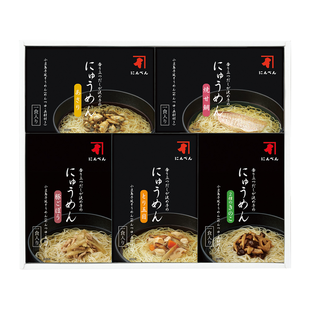 小豆島手延にゅうめん(焼甘鯛・豚ごぼう・とり五目・あさり・2種のきのこ):麺各40g、つゆ・具材付