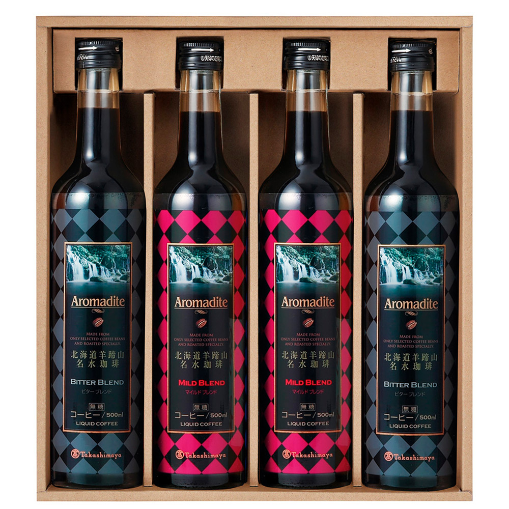 名水珈琲(ビターブレンド×2・マイルドブレンド×2)各500ml 無糖