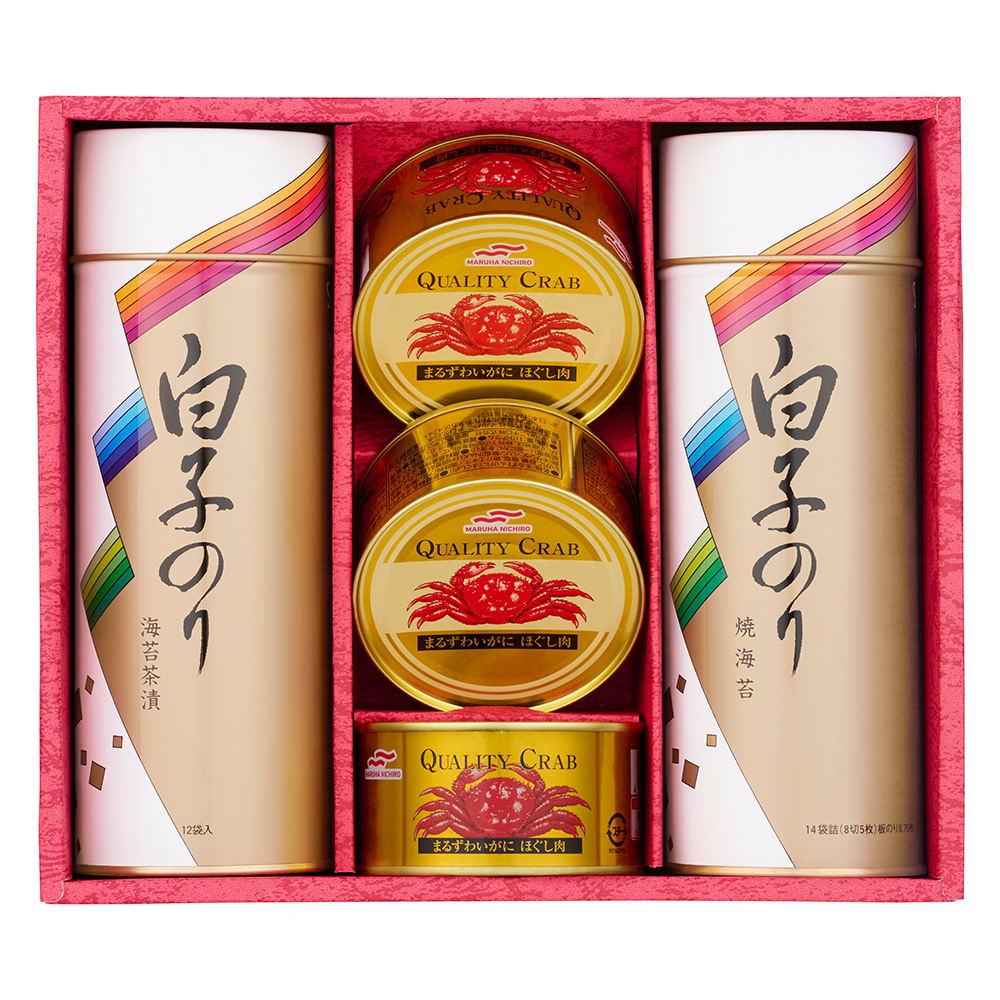 のり茶漬け(12袋)、まるずわいがにほぐし肉110g×3、焼のり 14袋詰(8切5枚)