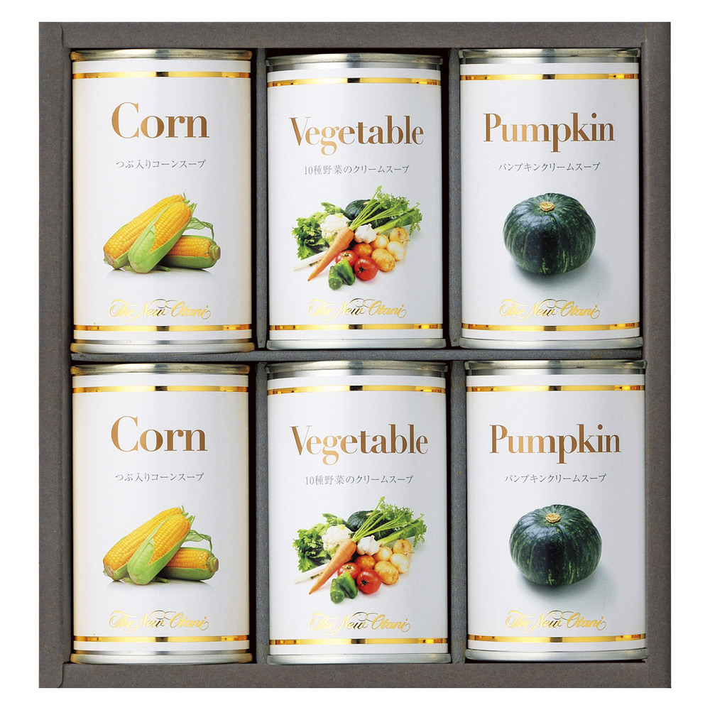 つぶ入りコーンスープ165g×2、パンプキンクリームスープ・10種野菜のクリームスープ各160g×2