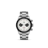 ブラックベイ クロノに搭載されているマニュファクチュール クロノグラフキャリバー MT5813は、時、分、秒、クロノグラフ、日付機能を備えている。他のチューダーのマニュファクチュール キャリバー同様、特徴的な仕上げが施されている。モノブロックのタングステン製ローターはオープンワークで細部にサンドブラストを伴うサテン仕上げ、ブリッジとメインプレートはサンドブラスト表面とレーザー装飾が交互に施されている。